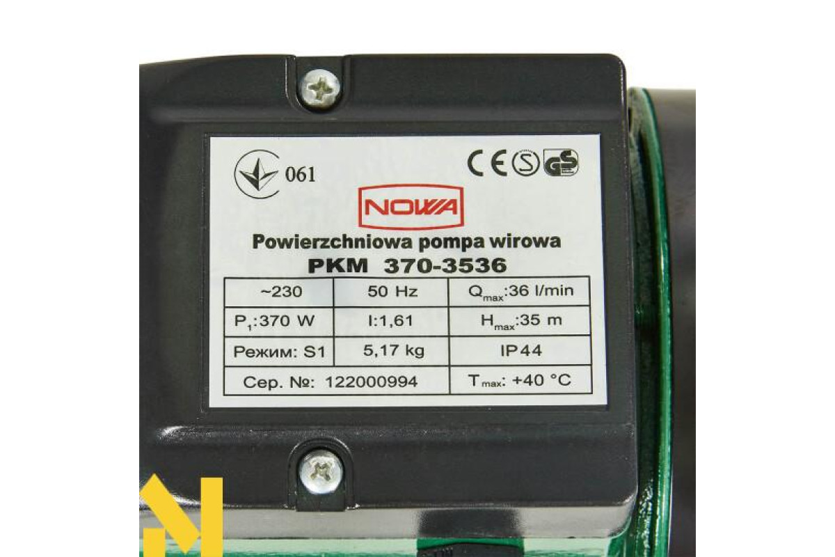 Насос поверхневий вихровий NOWA PKM 370-3536 призначений для перекачування чистої холодної води в системах водопостачання і зрошування.