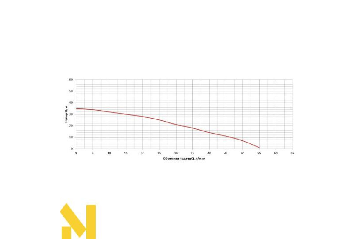 Напір (Н), м | 35 | 34 | 32 | 30 | 28 | 25 | 21 | 18 | 14 | 11 | 7 | 1 |