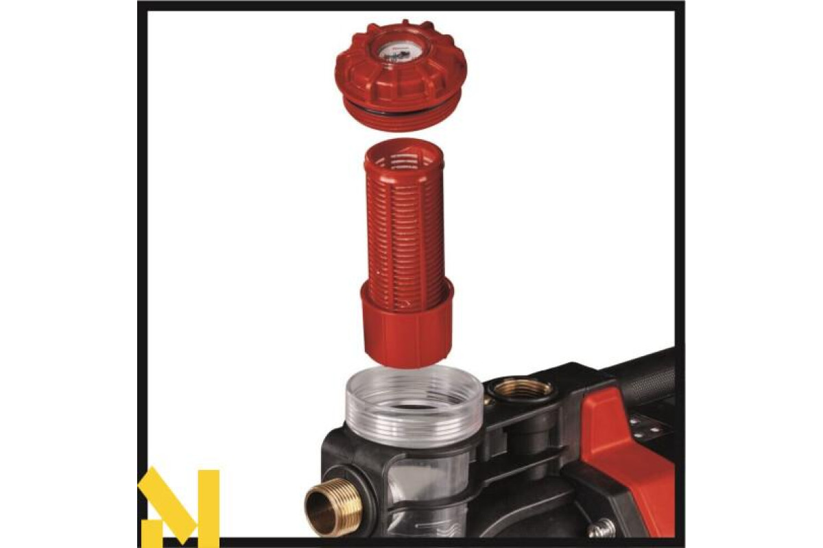 Насос легко спорожнити, особливо для захисту від морозу взимку, за допомогою гвинта для зливу води на нижньому боці. Для захисту від забруднень садовий насос оснащений попереднім фільтром. Він оточений прозорим корпусом, що дає змогу в будь-який момент визначити, чи достатньо насос наповнений водою, чи фільтр забруднений і його потрібно очистити. Зворотний клапан також запобігає потраплянню води. У разі перегрівання пристрій автоматично вимикається за допомогою захисту від перевантаження, щоб уникнути пошкодження.