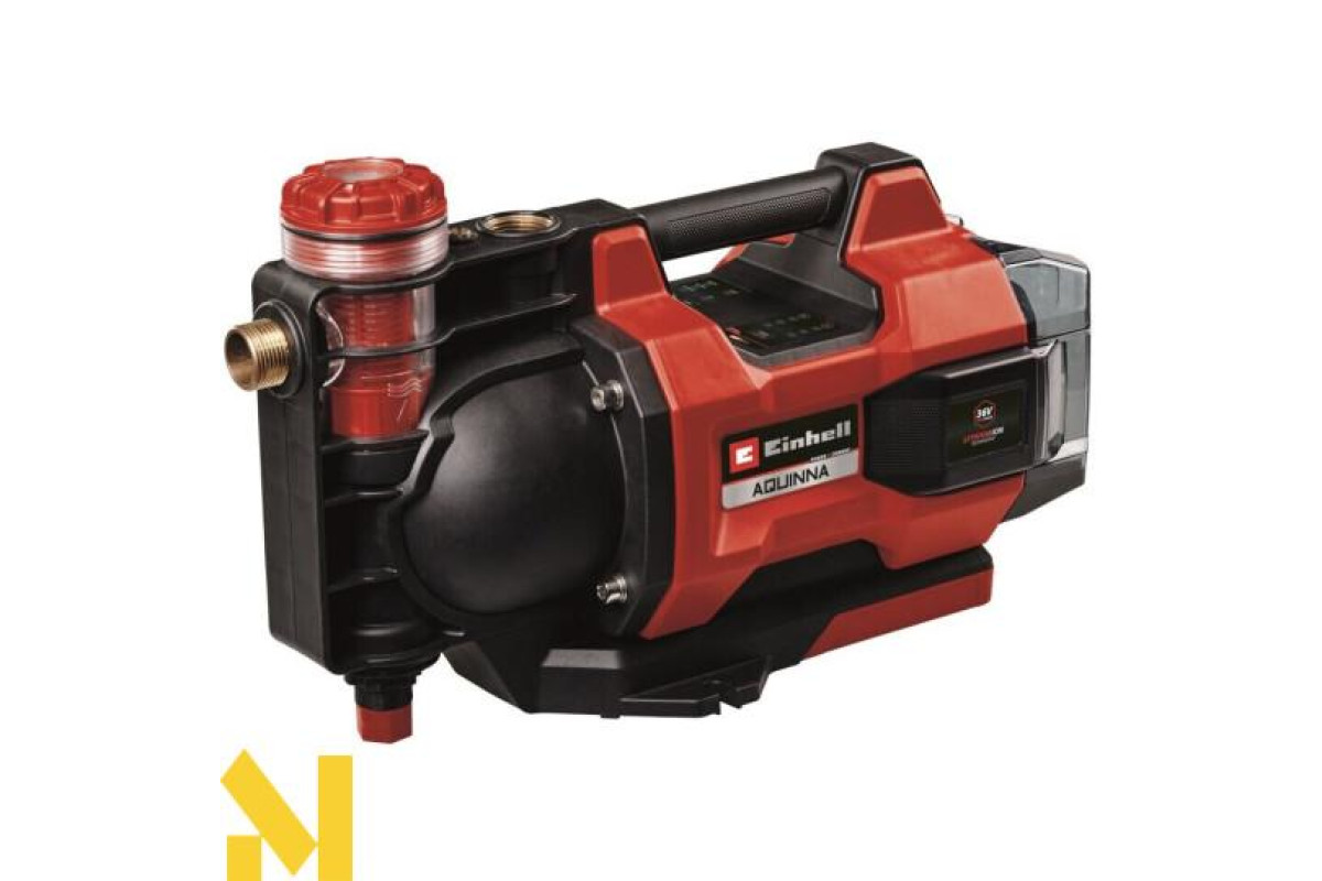 Акумуляторний садовий насос Einhell AQUINNA 36/38 F LED AUTOMATIC - це потужний насос, який можна використовувати де завгодно вдома і в саду, коли воду потрібно перекачувати з пункту А в пункт Б без окремого підключення до живлення. AQUINNA 36/38 F LED працює від двох 18 В акумуляторів і є пристроєм сімейства Einhell Power X-Change. Акумулятор і зарядний пристрій для Power X-Change можуть використовуватися для всіх пристроїв сімейства Power X-Change. Ємність двох батарей можна в будь-який час побачити на світлодіодному екрані рівня заряду.