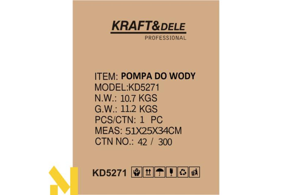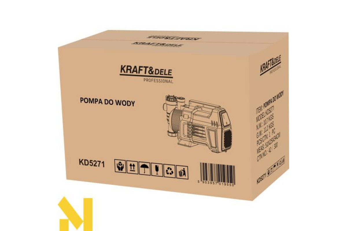 KD5271 — це потужна садова помпа марки KRAFT&DELE потужністю 1500 Вт, призначена для живлення систем зрошення та забору води з природних і водосховищ. Пристрій ідеально підходить для поливу садів, городів, обслуговування газонних спринклерів та подачі води для побутових потреб.