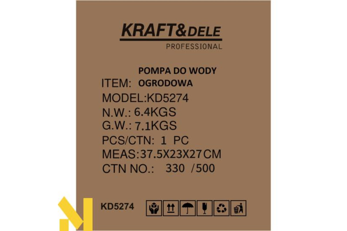 KD5274 — це потужна садова помпа марки KRAFT&DELE потужністю призначена для живлення систем зрошення та забору води з природних і водосховищ. Вона ідеально підходить для поливу парків, садів, городів та для обслуговування поливальних систем для газонів.