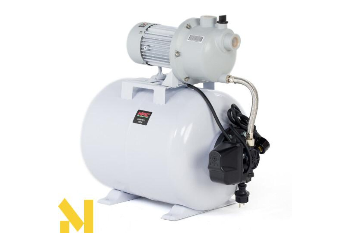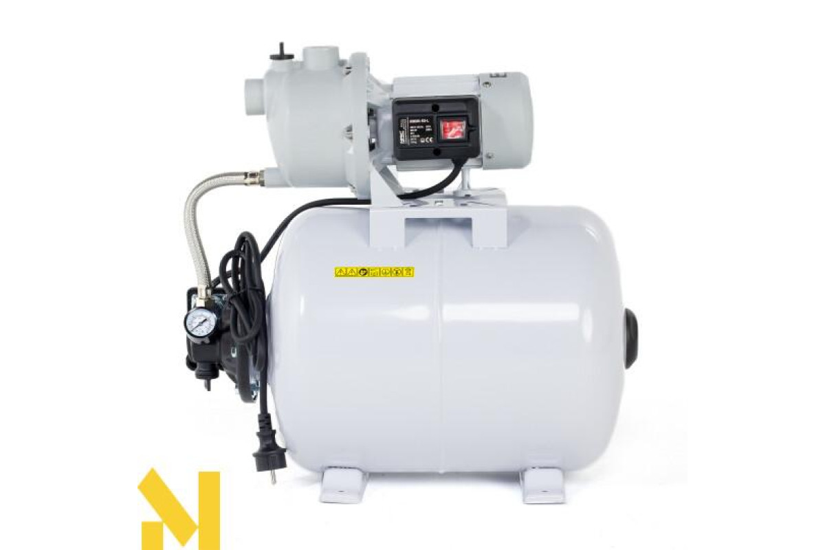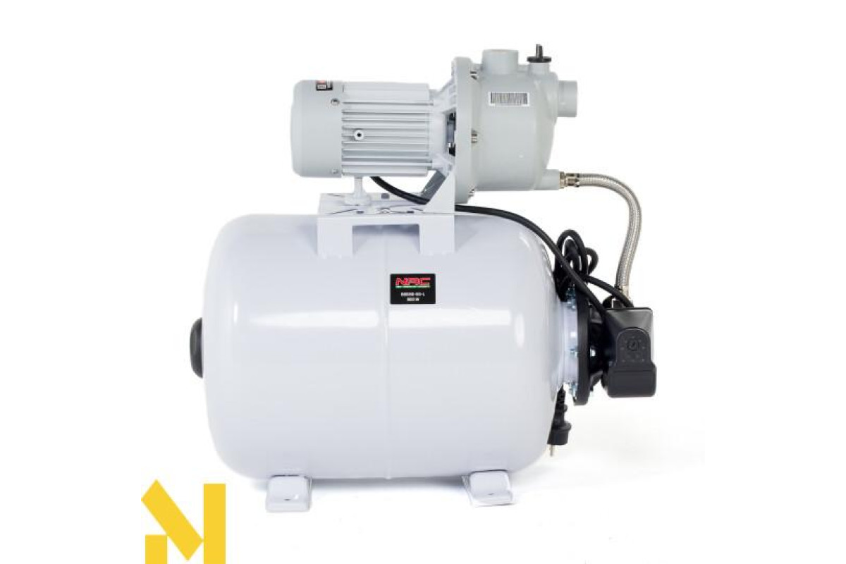 Садовий водяний насос NAC BSE80-50-L оснащений ефективним двигуном потужністю 800 Вт та 50-літровим резервуаром для води.