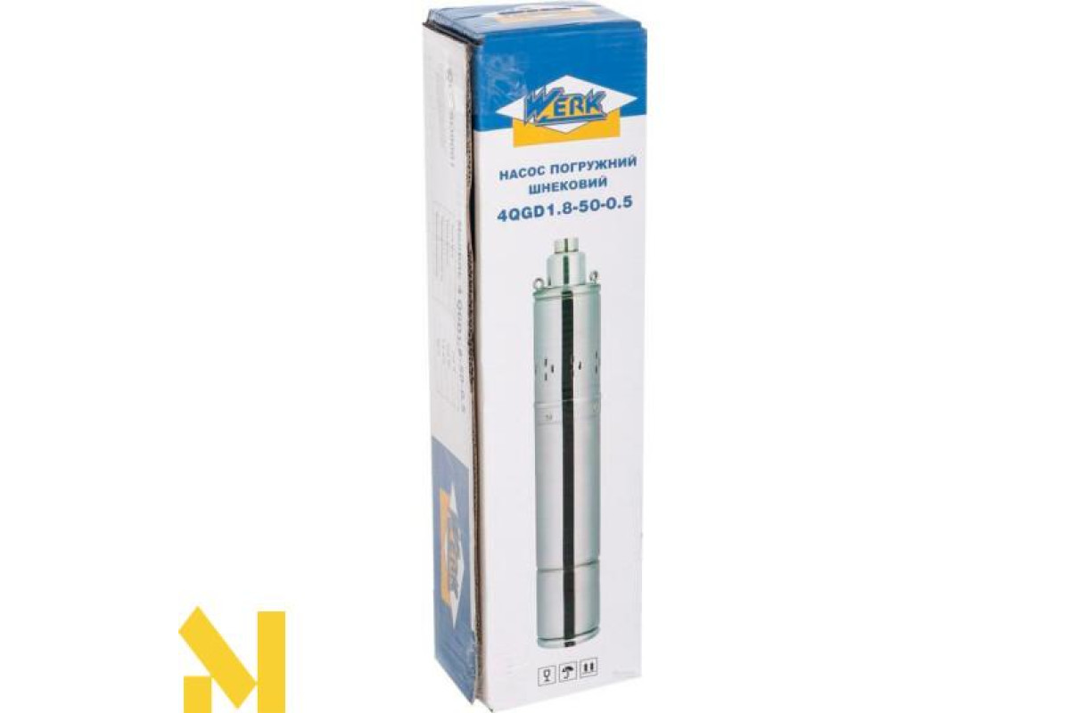 Насос Werk 1.8-50-0.5 призначений для подавання чистої питної води зі свердловин і колодязів діаметром від 100 мм.