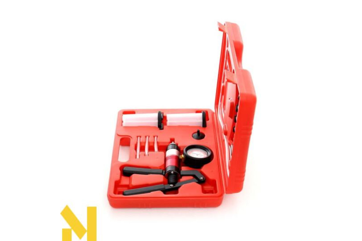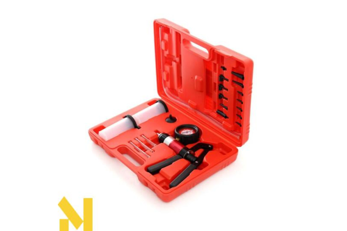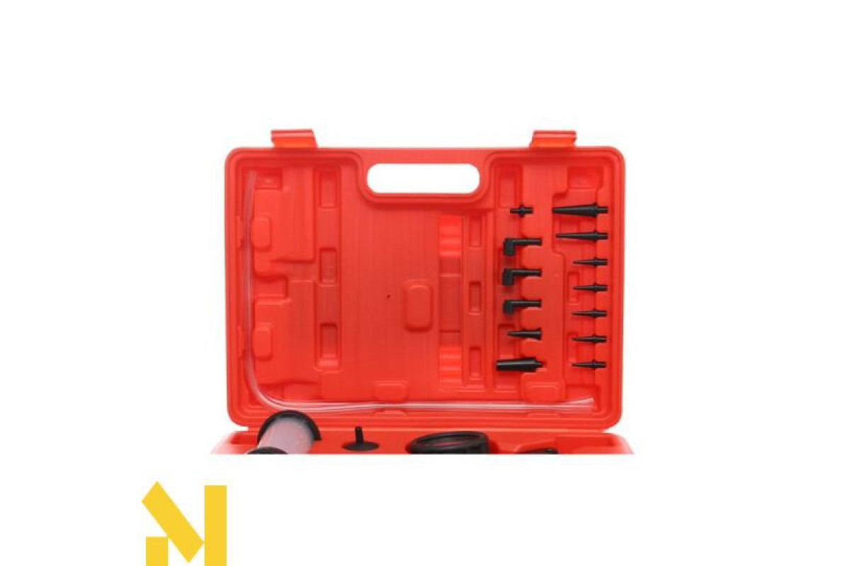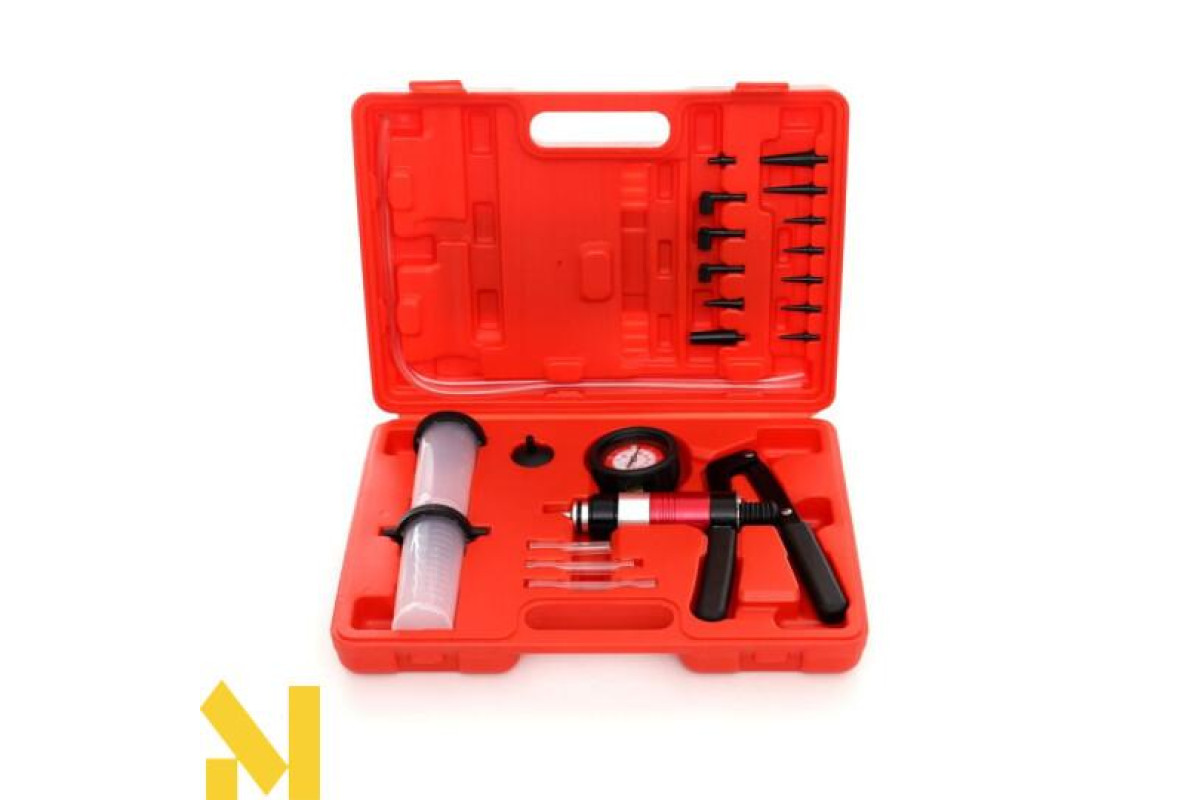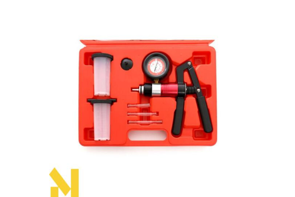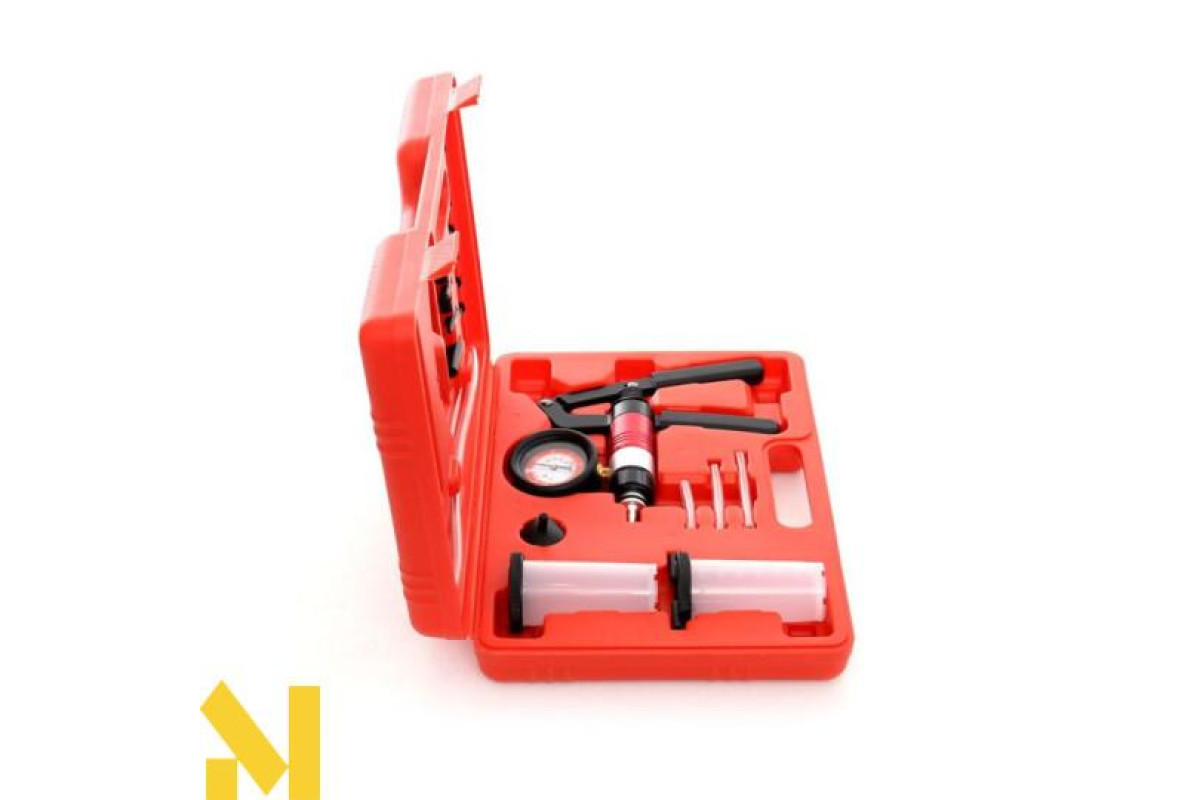 Набір дозволяє перевірити гідравлічні частини автомобіля. Може використовуватися для видалення повітря з гідравлічних систем або сифонних рідин. Оснащений вбудованим вакуумним манометром.