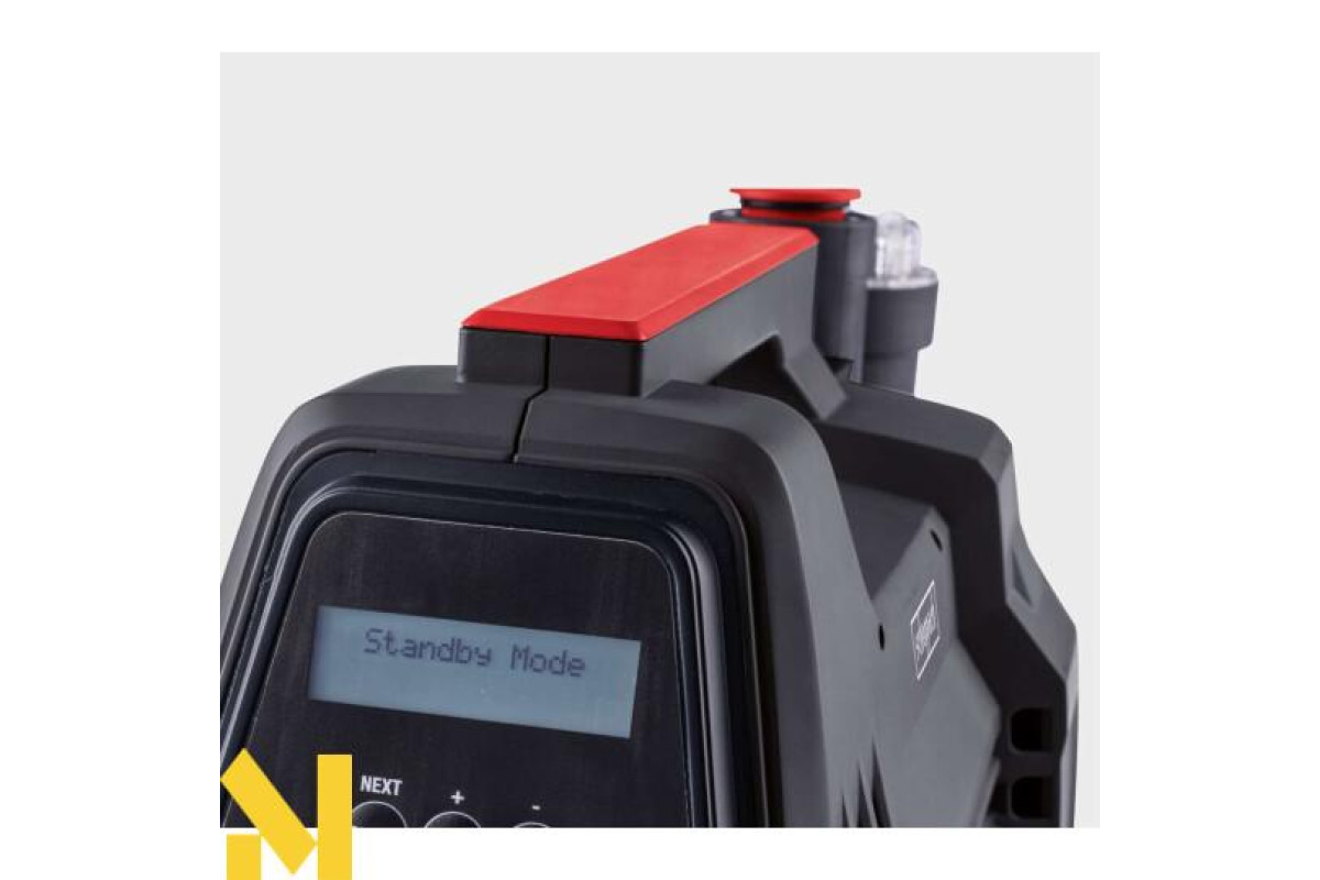 Побутовий напірний насос Scheppach GP1100Jet з РК-дисплеєм потужністю 1000 Вт перекачує до 3800 літрів побутової води на годину зі свердловини або цистерни для використання в саду або для поливу вдома. Завдяки автоматичній системі система працює особливо ефективно та забезпечує постійний тиск. Різні режими можна вибирати за допомогою РК-дисплея. Для оптимального використання побутовий напірний насос також має три регульовані режими роботи: автоматичний, таймер і безперервний режим роботи.