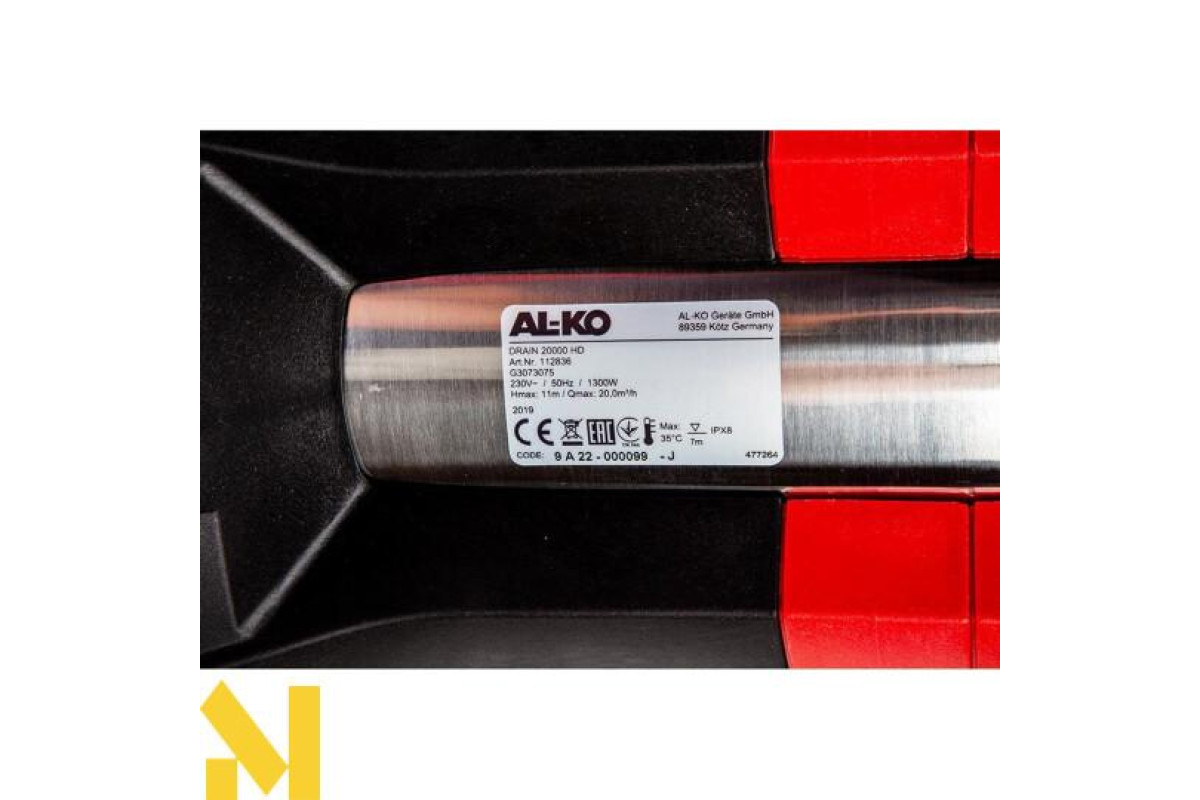 Електронасосний агрегат AL-KO DRAIN 20000 серії HD найбільш потужна і продуктивна погружная модель для перекачування брудної води. Про це красномовно свідчать висока пропускна здатність помпи (до 20 000дм3 / ч) і мощностной потенціал електроприводу (понад 1250Вт). Обумовлені зазначені показники агрегату модифікованої конструкцією гідравлічного вузла, а також підвищеною надійністю асинхронного двигуна. Крім того, впускні отвори моделі DRAIN-20000 збільшені в розмірі, а також мають радіальне розташування щодо робочого вала. Це визначає високу всмоктувальну здатність помпи. Тому даний насос ідеально підходить для ефективного відкачування стічної рідини і водних розчинів з будівельних котлованів, навіть якщо вони містять 5% нерозчинних органічних включень з допустимим розміром в 38мм. При цьому конструкція агрегату має підвищений експлуатаційний ресурс: крильчатка, внутрішній і зовнішній корпус виготовлені зі стійких до корозії матеріалів. Надалі описі перераховані вище переваги насоса DRAIN 20000 HD розглянуті більш детально.
