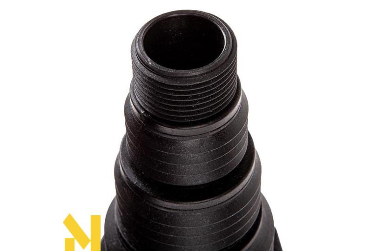 Незаперечною перевагою представленої моделі є універсальний перехідник в модулі вихідного патрубка. По-перше, перехідник розташований під кутом 90 і вільно обертається. Тому під час перекачування рідини робочий шланг надійно захищений від випадкових перегинів. По-друге, вузол перехідника оснащений комбінованим ніпелем, який дозволяє використовувати більшість шлангів зі стандартними діаметрами.