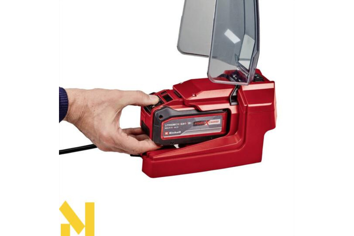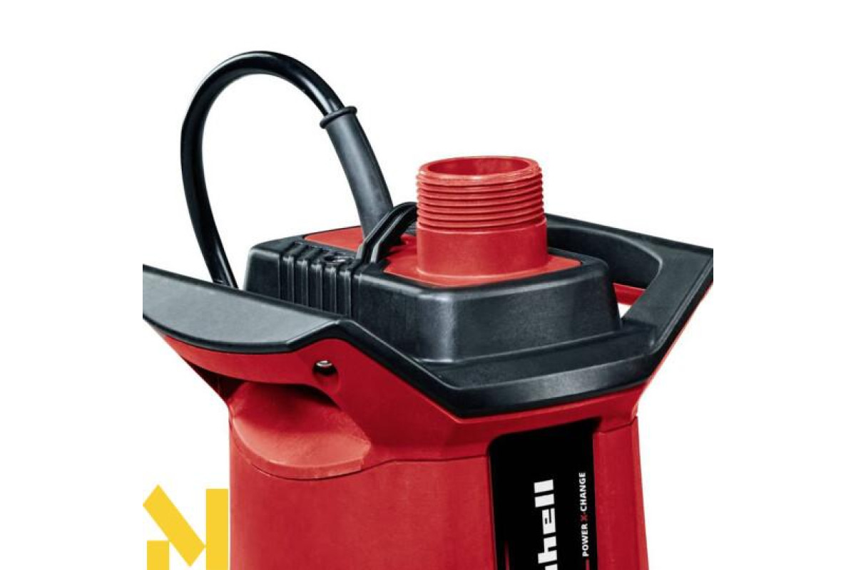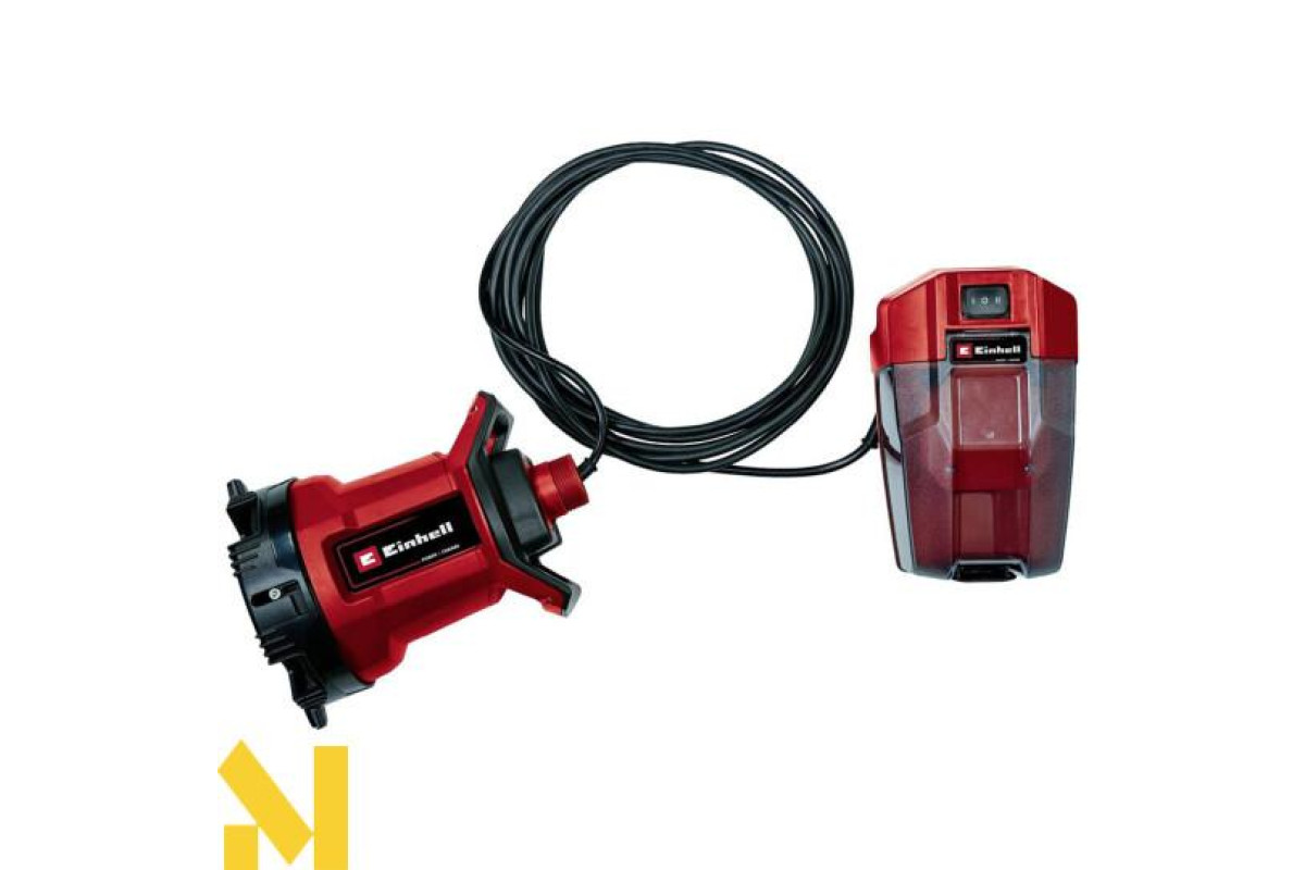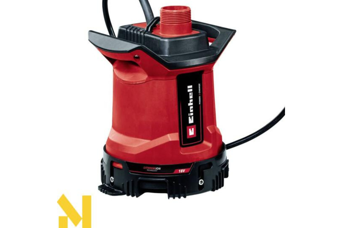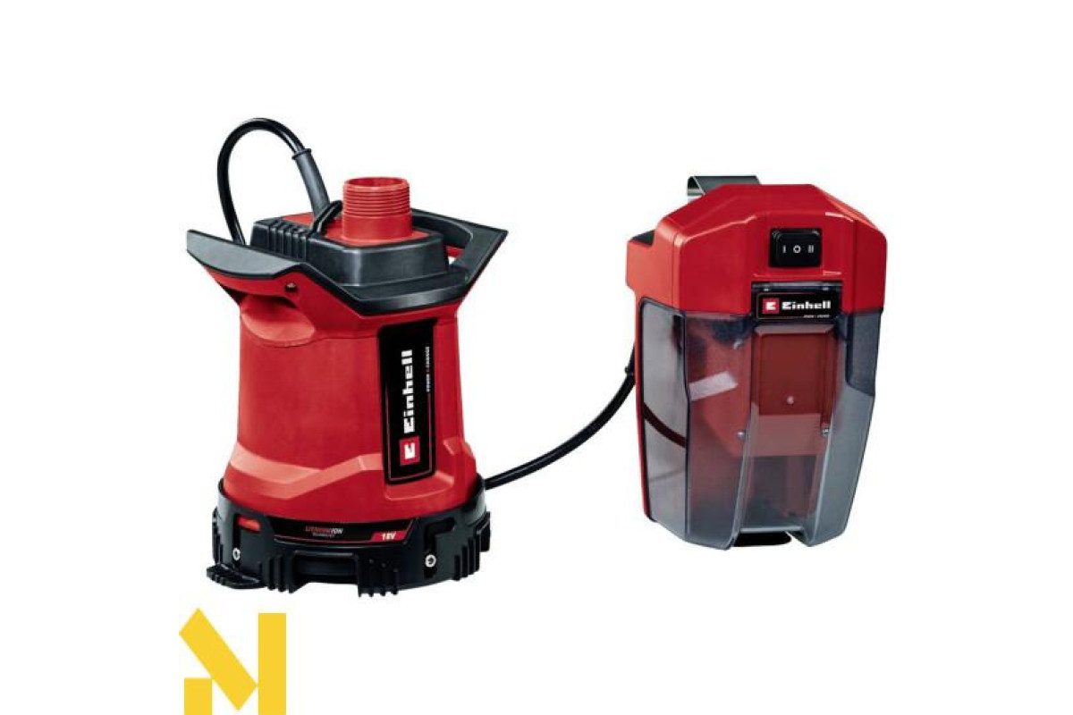 Акумуляторний водяний насос для стічних вод Einhell GE-DP 18/25 LL Li-Solo завдяки корпусу, що обертається, є універсальним засобом для транспортування чистої або брудної води. Насос входить до сімейства Power X-Change. Акумуляторний блок із настінним кронштейном, монтажним гаком і кабельним кронштейном (для з'єднувального кабелю завдовжки 5 м) захищає акумулятор. Водяний насос забезпечує продуктивність до 7000 літрів на годину за тиску макс. 0,5 бар і має два рівні потужності: ECO-режим для тривалішої роботи з меншою витратою батареї та BOOST-режим для тривалішої роботи з меншою витратою батареї. Занурювальний насос підходить для води з частинками бруду розміром до 25 мм і може перекачувати чисту воду за залишкового рівня води до 1 мм. До комплекту постачання не входять акумулятор і зарядний пристрій.