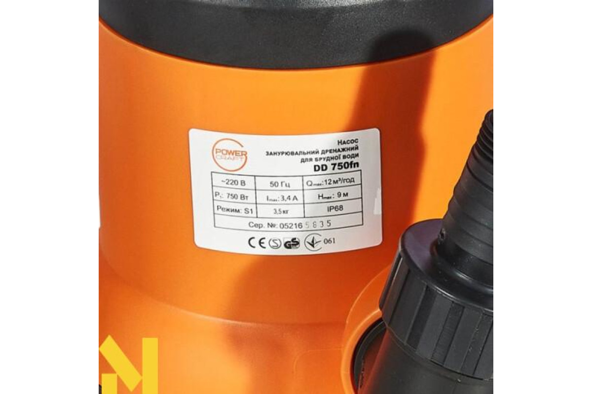 Насос дренажний Powercraft DD750fn призначений для перекачування брудної води. Відмінною рисою насоса є висока продуктивність (200л/хв.) та великий напір. Потужність двигуна становить 750Вт, чого із запасом вистачає для продуктивної роботи протягом тривалого часу. Насос має надійні гумові ущільнення та укомплектований автоматичним поплавком, який допоможе стежити за рівнем води та зберегти від поломок двигун. Основною характеристикою насоса є повне занурення у воду - колодязь, водоймище або свердловину.