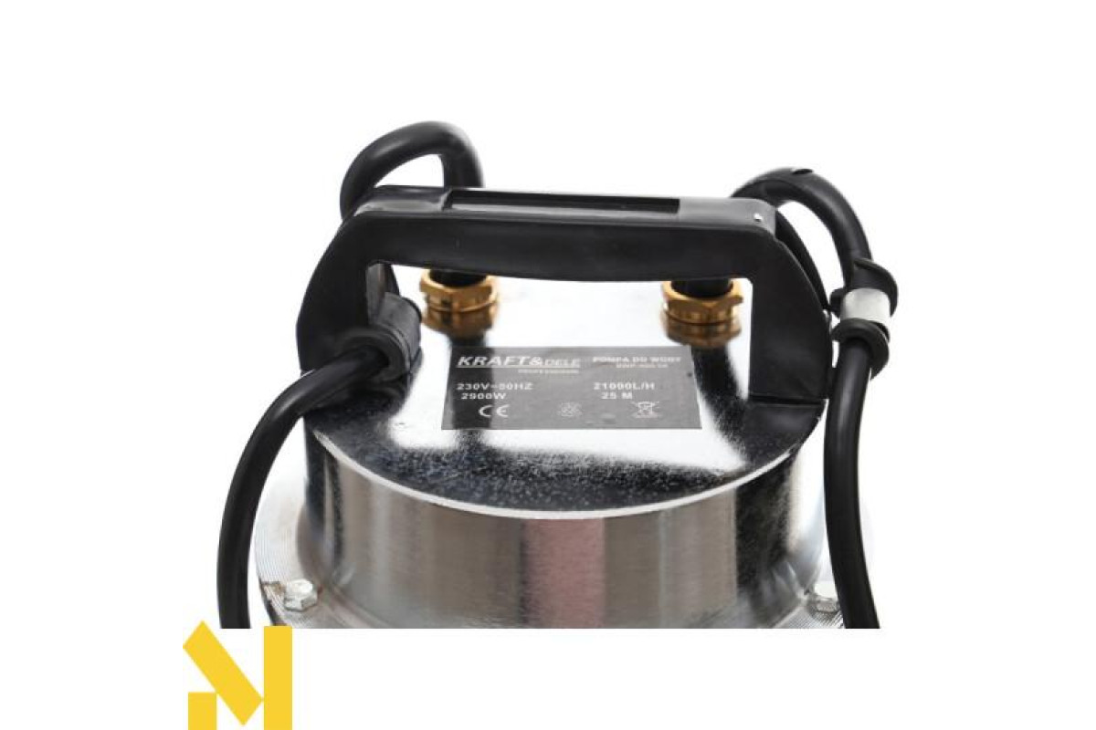 Водяний насос KRAFT&DELE максимальною потужністю 2900 Вт призначений для чистої та брудної води. Завдяки використанню подрібнювача насос KD757 може перекачувати стічні води та інші забруднені рідини з максимальним розміром забруднень 7 мм.