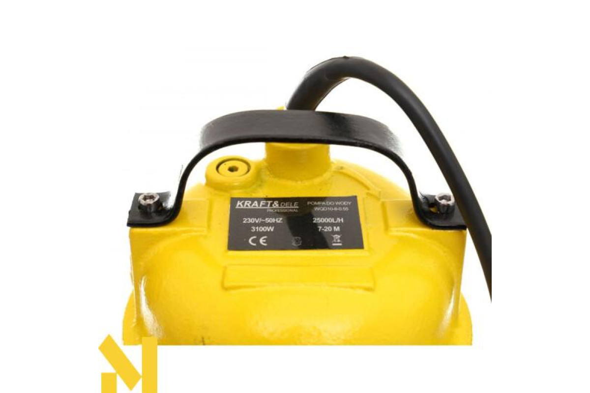 Занурювальний водяний насос Kraft&Dele KD761 з максимальною потужністю 3100 Вт. Пристрій має високу вихідну потужність.