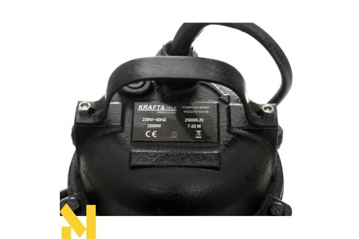 Занурювальний водяний насос з подрібнювачем KRAFT&DELE максимальною потужністю 32,00 Вт. Апарат має велику потужність.