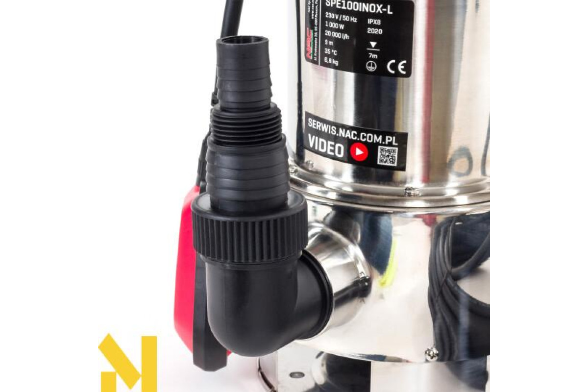 Занурювальний насос для брудної води NAC SPE100HI-L призначений для перекачування води, яка може містити забруднення максимальним діаметром 35 мм.