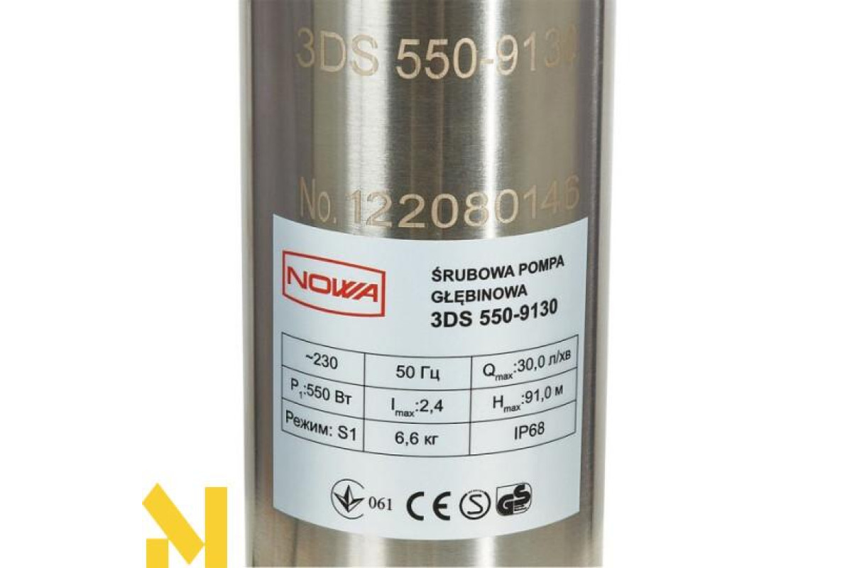 NOWA 3DS 550-9130 - недорогий свердловинний насос для організації приватної системи водопостачання в приватному секторі;
