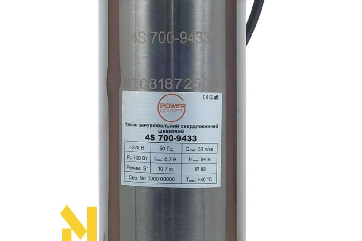 Насос Powercraft 4S 700-9433 - апарат високого класу, який призначений для перекачування чистої холодної води, що не містить абразивних твердих частинок або довгих волокон. Відрізняється невеликими розмірами, що дозволяє використовувати його в тому випадку, коли місця насосній станції не вистачає або споживання води не дуже високе - наприклад, на дачі.