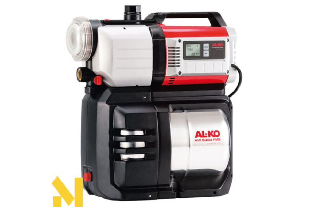 Насосна станція AL-KO HW 5000 FMS Premium обладнана вмонтованим попереднім фільтром. Передбачені також захист від холостого ходу, бак з нержавіючої сталі, система вимірювання витрат, екорежим.