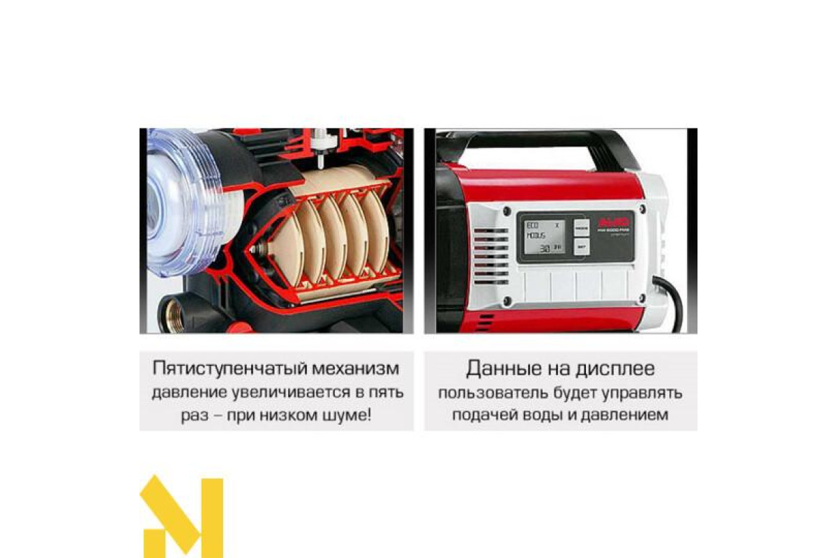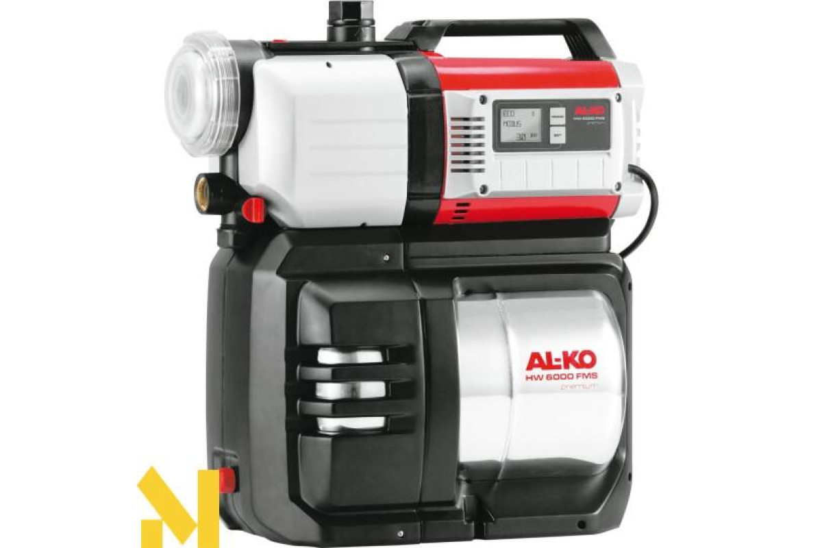 Система управління в насосній станції AL-KO HW 6000 FMS Premium електронна. Є також захист від холостого ходу. Продуктивність роботи запропонованої моделі становить 6000 літрів на годину. Ця насосна станція може працювати в економрежимі. Таким чином, вдається заощадити до 15% електроенергії.