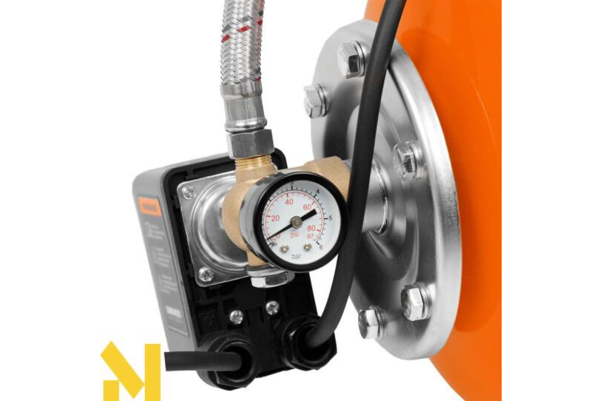 Автоматична насосна станція зі сталевим баком об'ємом 24 л. Корпус насоса виготовлений з нержавіючої сталі. Якісні ущільнення забезпечують тривалу і безвідмовну роботу пристрою.