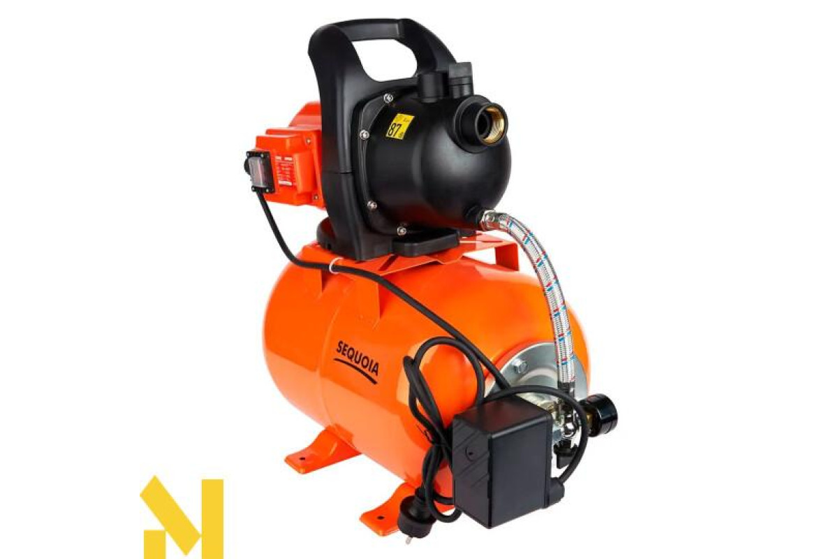 Насос працює у парі з гідроакумулятором. Гідроакумулятор – бак для зберігання води під тиском, який допомагає підтримувати постійний тиск у системі та зменшує частоту включень насоса, що значно впливає на термін служби агрегату. Манометр служить для візуального контролю тиску в системі