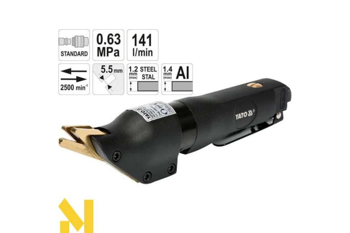 Пневматичні ножиці YATO для різання листового металу, для використання, серед іншого, в кузовних майстернях.