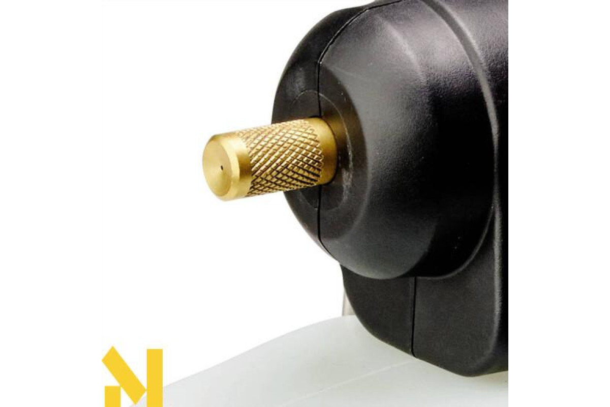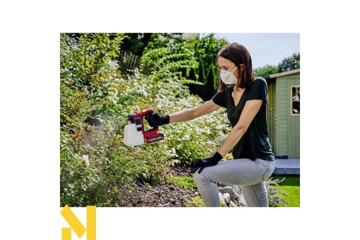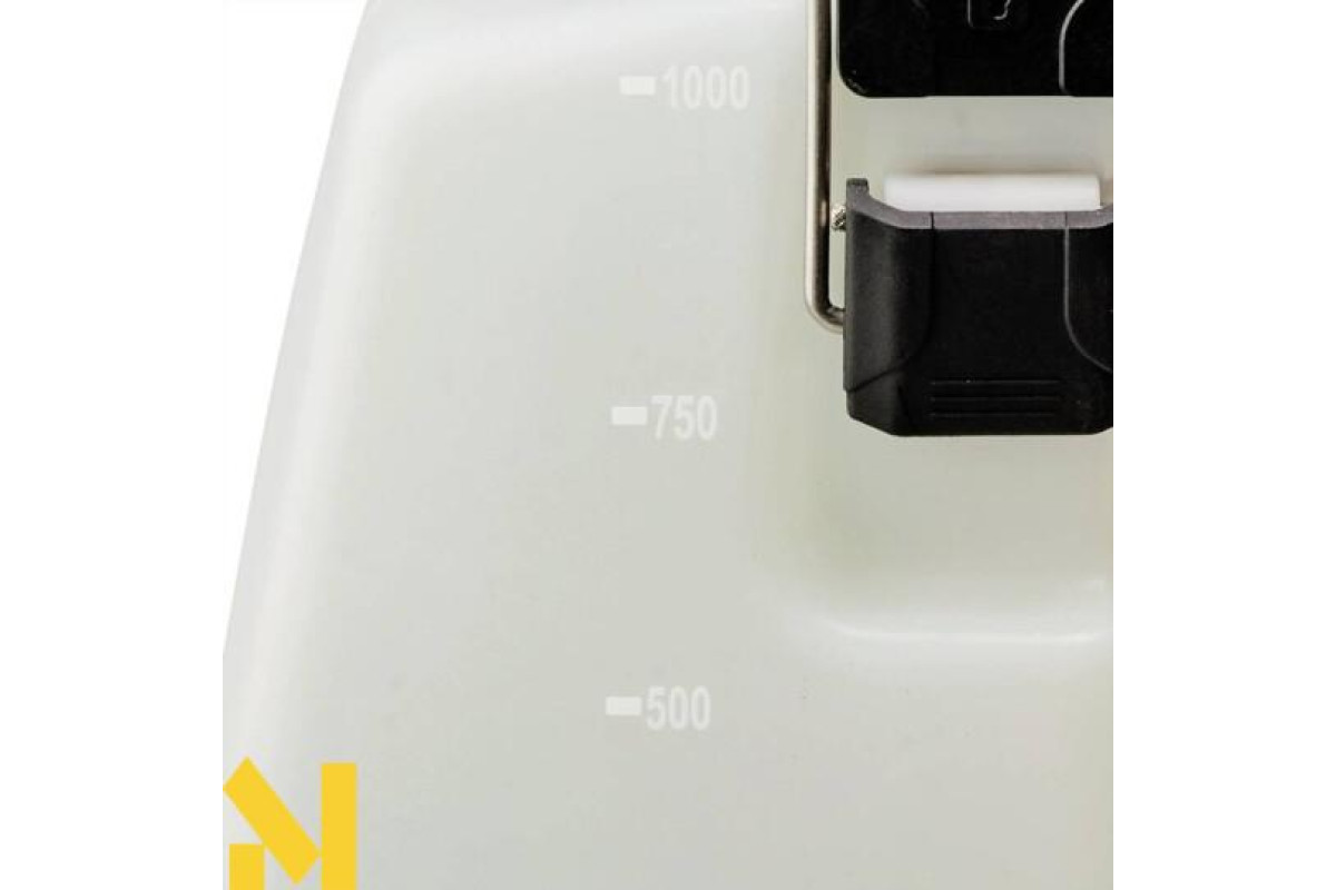 Обприскувач підтримує роботу з добривами, пестицидами, а також із дезінфікуючими засобами. Оснащений автоматичним насосом, який перетворює тиск 1,3 бар і перекачує до 9,6 літрів на годину. Ручне створення тиску не потрібне, це досягається за допомогою АКБ. Прозорий бак зі шкалою рівня вміщує до 1 л рідини. Завдяки витонченому дизайну і м'якому руків'ю, обприскувач легкого тиску, вагою 0,6 кг, зручно лежить у руці. Латунне сопло регулюється для налаштування струменя.