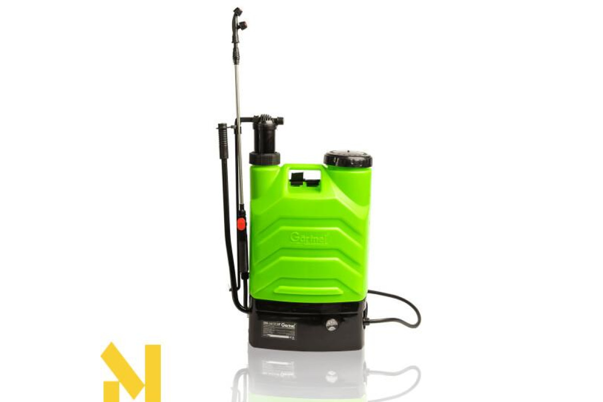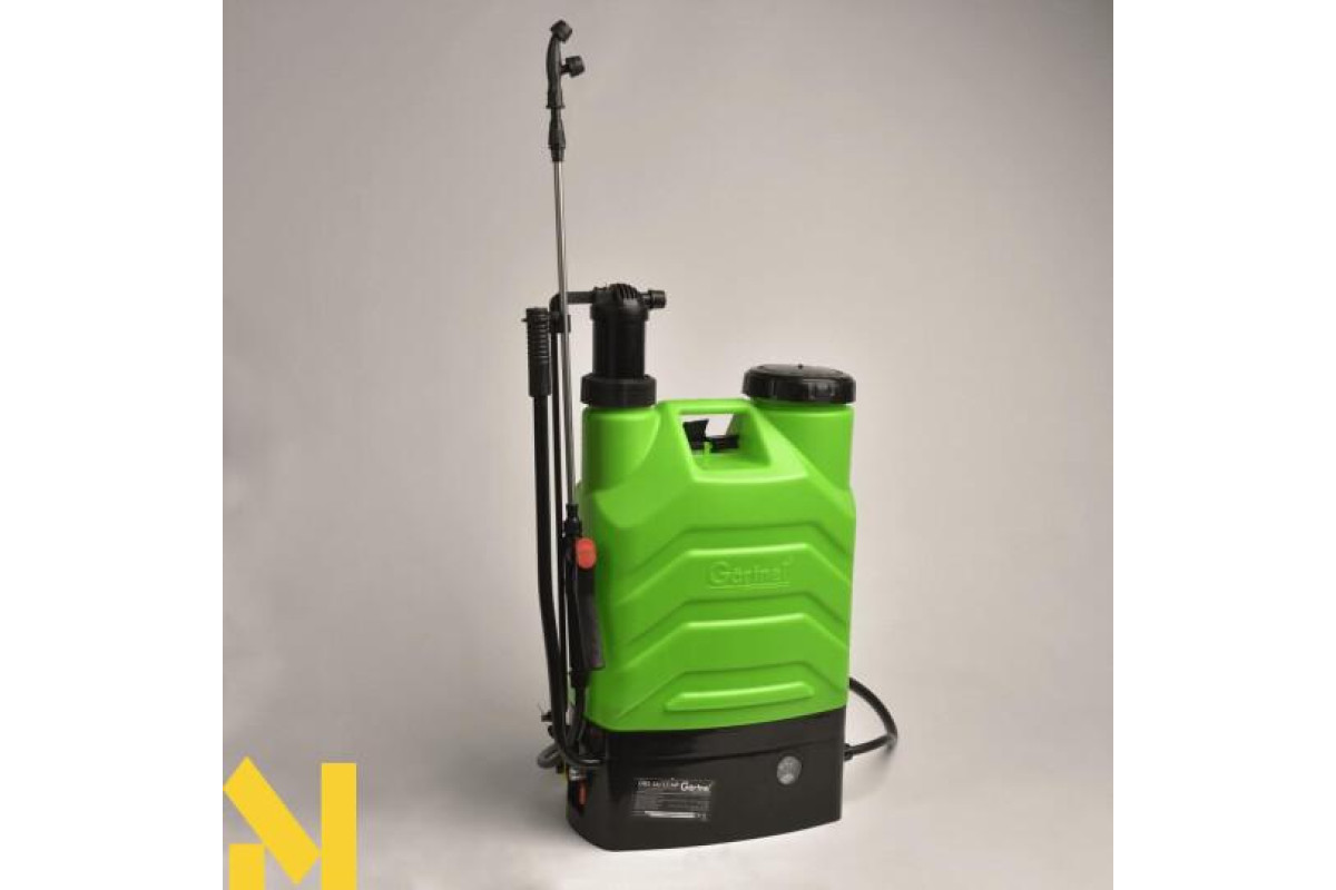 Обприскувач садовий акумуляторний Gartner GBS-16/12 MP, якісний і надійний садовий інвентар для хімічної обробки і захисту рослин від бур'янів і різних паразитів. Відмінною особливістю даної моделі є можливість обробки великих площ, ефективну роботу забезпечує електродвигун потужністю 12 В роботу якого, в свою чергу, забезпечує акумуляторна батарея ємністю 8.0 Ач і можливість ручного підкачування при низькому рівні заряду. Обприскувач оснащений чотирма видами насадок і зручним ременем з плечовим кріпленням, ергономічною спинкою для зручності в процесі обробки рослин.