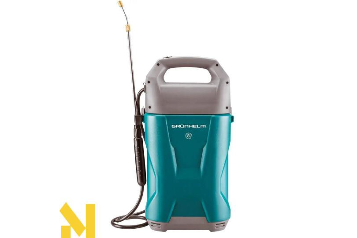 Акумуляторний обприскувач Grunhelm GHS-8 полегшує експлуатацію за рахунок електронасоса, що працює від вбудованої акумуляторної батареї напругою 3,7V/2Ah. Довговічний герметичний кислотний акумулятор не вимагає обслуговування та заряджається від автоматичного зарядного пристрою, що входить до комплекту виробу.