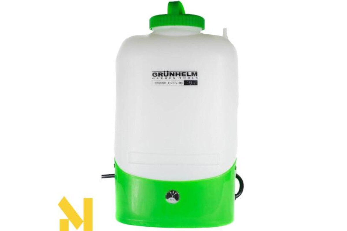 Обприскувач акумуляторний Grunhelm GHS -18 (81439) - сучасний апарат, призначений для боротьби з шкідниками, бур'янами та хворобами рослин. Призначений для використання, як на маленьких присадибних ділянках, так і в професійних цілях на великих площах. Модель оснащена діафрагмовим насосом, що живиться від акумуляторної батареї ємністю 8Ач. Максимальна тривалість роботи при повній зарядці акумулятора складає 4 години роботи. Цього цілком вистачає для комфортного користування. Зручність у роботі забезпечується зручним ремнем через плече ранцевого типу.