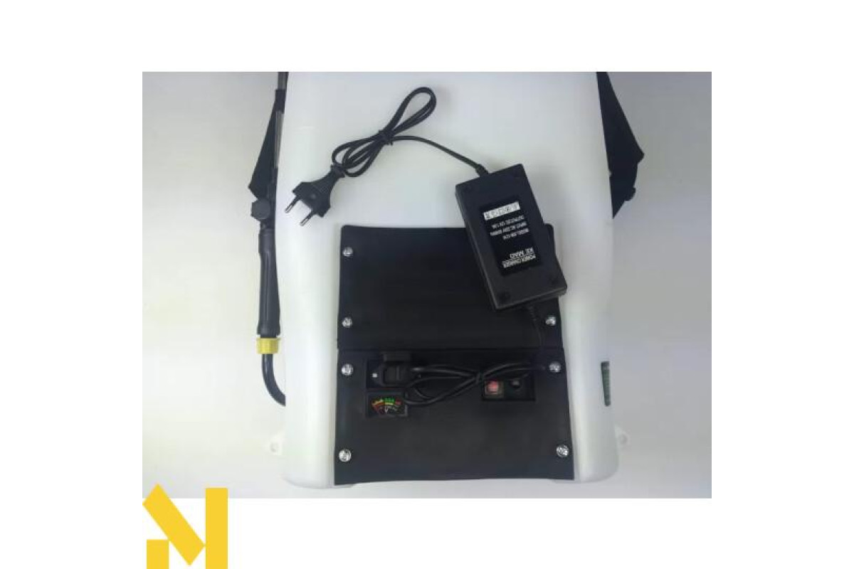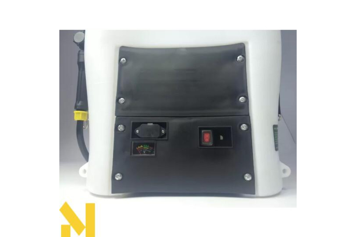Працює від вбудованого свинцево-кислотного акумулятора (12В), ємність якого дорівнює 8 Ач. Така ємність акумулятора забезпечує обробку на одному заряді досить великій території ділянки. У процесі безперервного виконання обприскування, даний обприскувач може працювати автономно протягом 5 годин. Стежити за станом заряду батареї користувач може за допомогою вольтметра, який розміщений на задній частині бака. Однією акумуляторної батареї вистачає на 600 циклів заряду / розряду. Зарядний пристрій для батареї входить в стандартну комплектацію SPR16E.