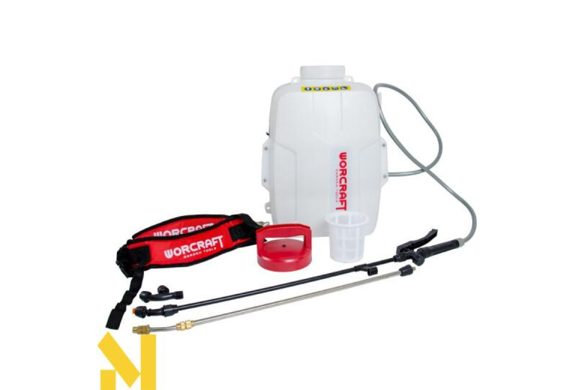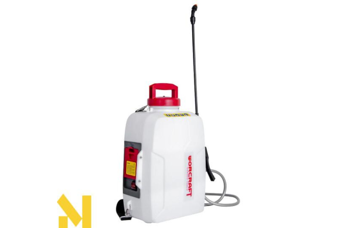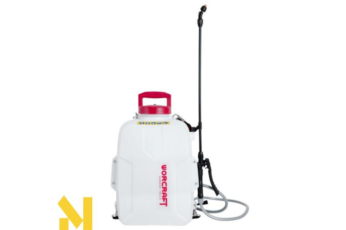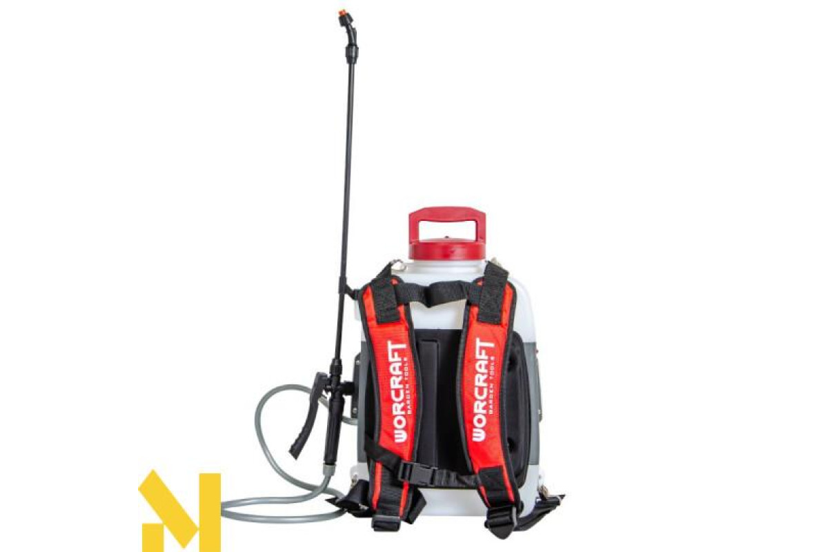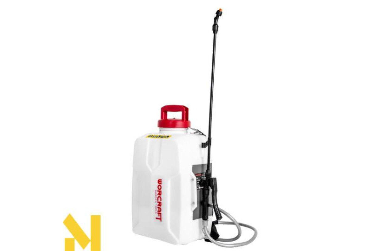 Потужний і мобільний інструмент з електроживленням від акумуляторної батареї з напругою 20 В дозволяє швидко і ефективно провести обприскування сільськогосподарських культур, фруктових садів, зрошення рослин.