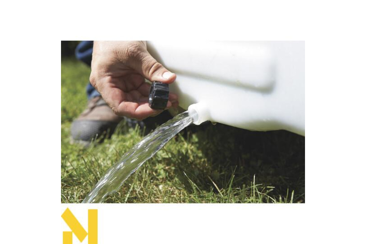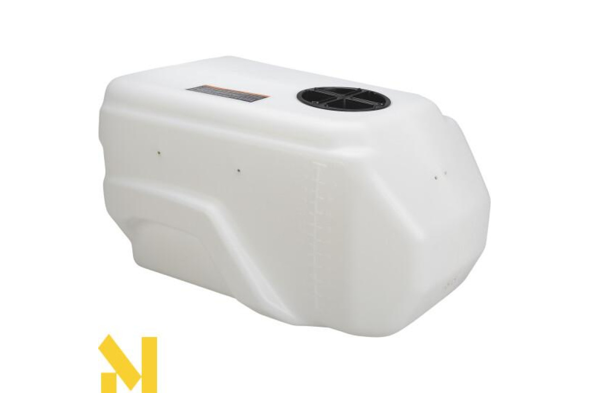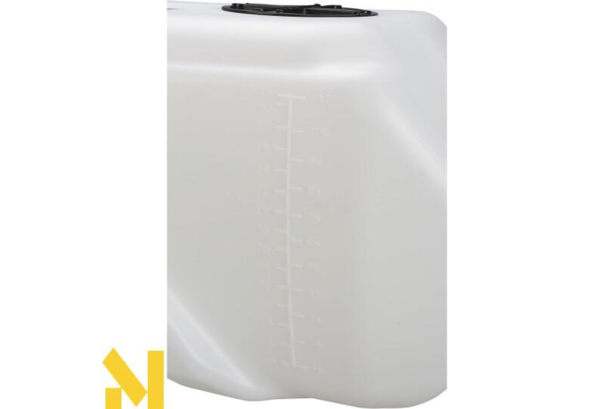 Бак обприскувача розташований на металевому шасі, і на баку нанесені позначки про літрах для зручного контролю поточного обсягу.
