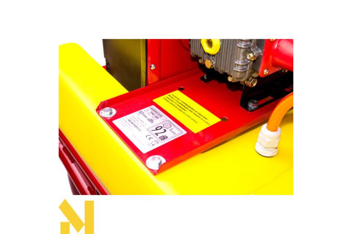 Обприскувач електричний Agrimotor TPE 355 використовують для обробки рослин захисними засобами, а також для внесення рідких добрив. Запропонований зразок обладнаний 800 Вт електромотором. Обсяг контейнера дорівнює 75 л. Вмонтований електромотор здатний нагнітати тиск в баку до 35 атмосфер. Завдяки цьому, можна обприскувати навіть високі дерева, оскільки дальність струменя становить 15 м.