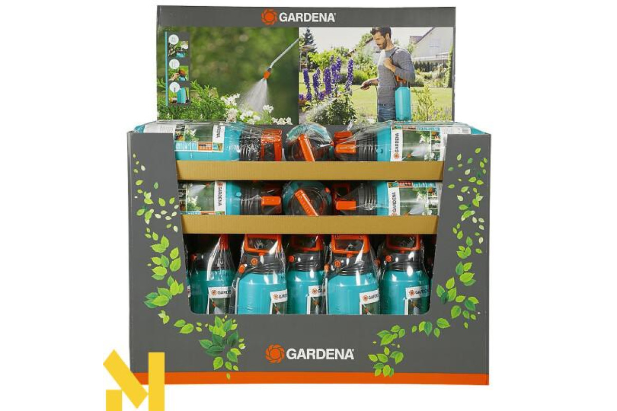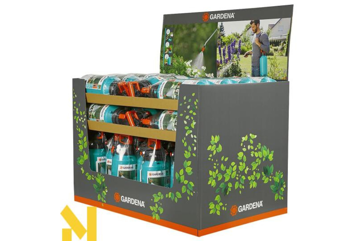 Із заводу обприскувач Gardena 5 літрів поставляється без упаковки з карткою товару і запаяний в прозору плівку.