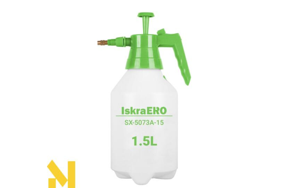 Ручний розпилювач об'ємом 1,5 л з функцією безперервного розпилення та кнопкою скидання тиску.