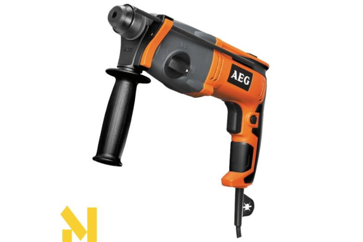 Перфоратор AEG KH 25 ES - режимний багатофункціональний інструмент. Призначений для свердління, свердління з ударом і довбання деревини, стали і цегли. Оснащений функцією блокування пуску (для тривалих робіт); блокування удару (для дерева і сталі) і обмежувачем глибини свердління. У перфораторі застосована революційна система захисту від пилу. Перфоратор зручний і при найтриваліших роботах (за рахунок ергономіки корпусу і рукояток).Перфоратор AEG KH 25 ES - відмінний вибір для свердління в твердих породах деревини, бетоні і цеглі. Незалежно від матеріалу, обмежувач глибини дозволяє свердлити отвори ідентичною глибини. Можливі три режими роботи в залежності від завдання (свердління, свердління з ударом, довбання). Для більшого комфорту, перфоратор оснащений функцією зупинки обертання, режимом зупинки удару (для свердління по дереву і сталі) і функцією реверсу (для вилучення застряглого свердла).Перфоратор оснащений потужним двигуном, що дозволяє працювати з самими щільними матеріалами. Патрон SDS-Plus дозволить швидко і без проблем змінити оснастку. Даний інструмент дуже функціональний і створений для тривалих робіт. Для цього кнопка «пуск» може бути зафіксована у включеному стані. Перемикач режимів роботи розташований на корпусі. Захисна муфта оберігає вузли двигуна від пошкоджень, а також користувача - від можливих виробничих травм. Покриття у рукояток рифлене, що запобігає вислизання інструменту під час роботи.