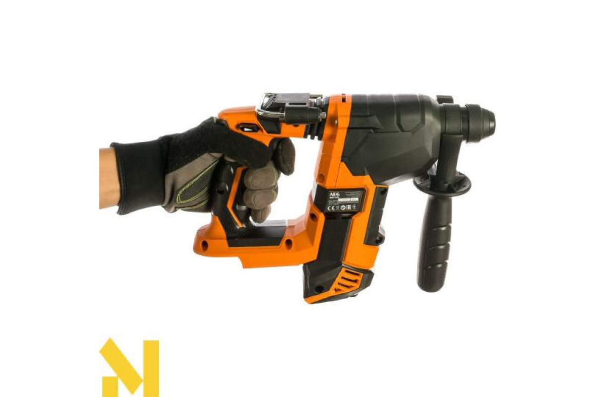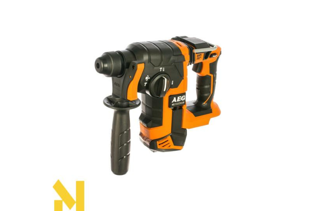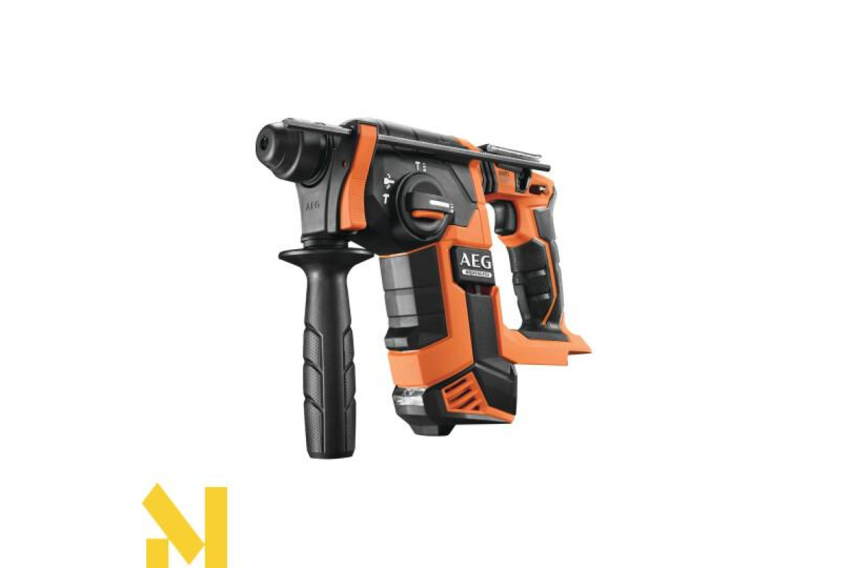 Акумуляторний безщітковий трирежимний перфоратор AEG BBH18BL-0 використовується для простого та ударного свердління у деревині, металі, пластику. Вибір режиму здійснюється за допомогою повороту тумблера на корпусі.