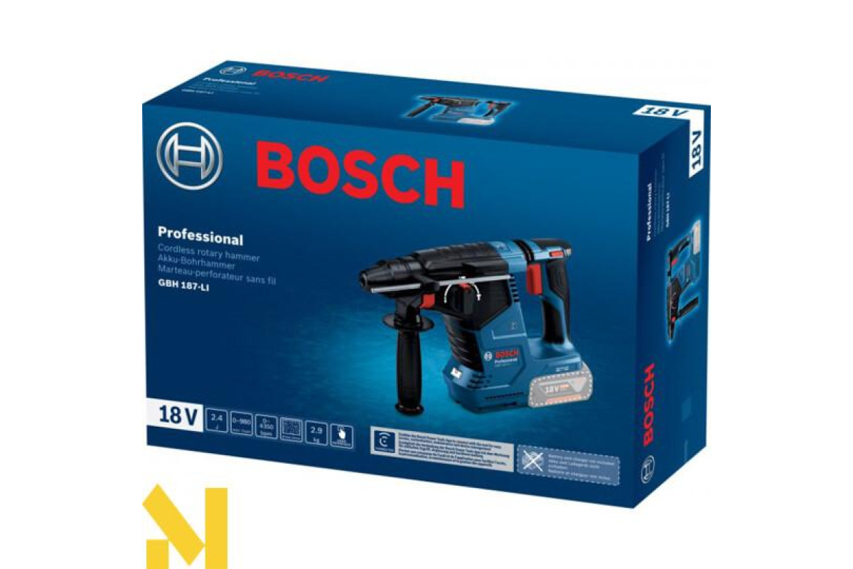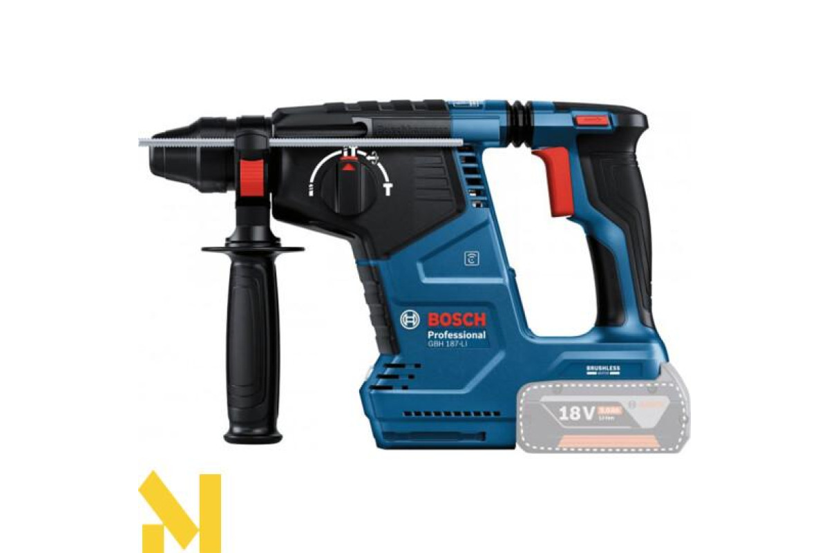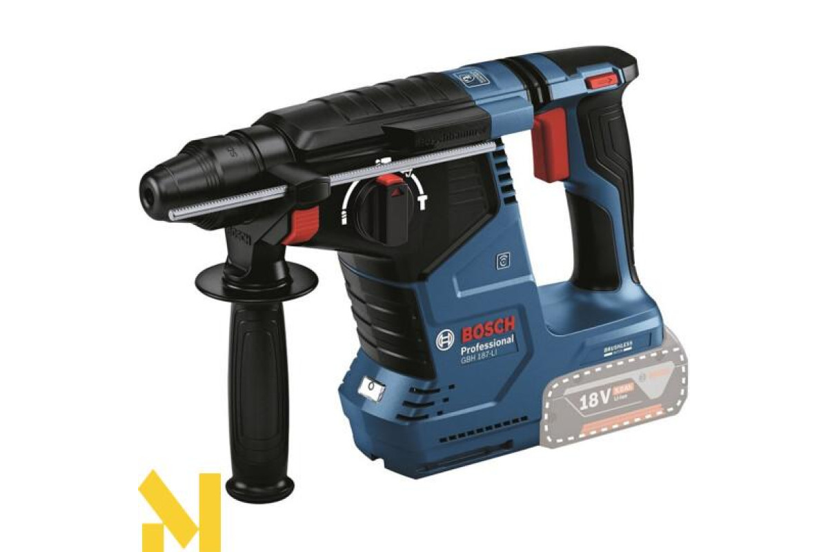 GBH 187 Professional - універсальний інструмент у категорії акумуляторних перфораторів Bosch SDS plus - ідеальний для щоденного використання. Він призначений для свердління і довбання бетону та цегляної кладки.