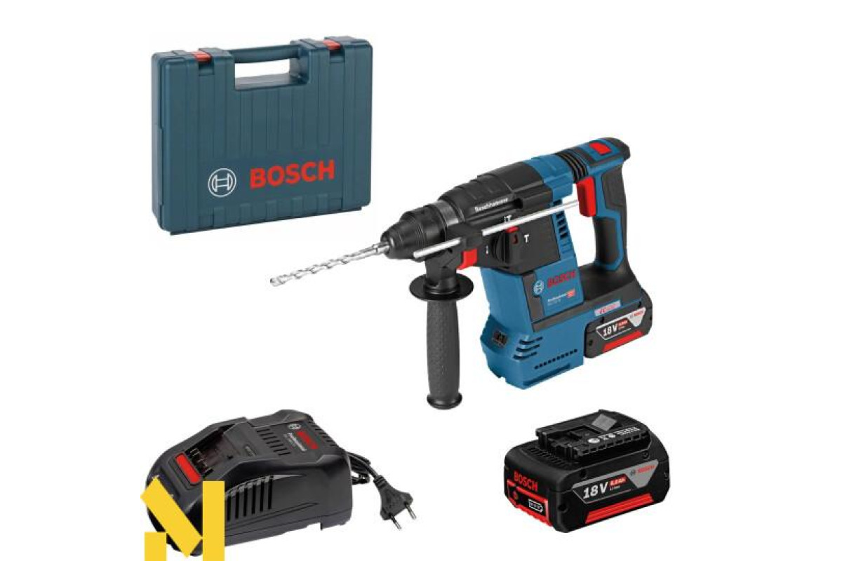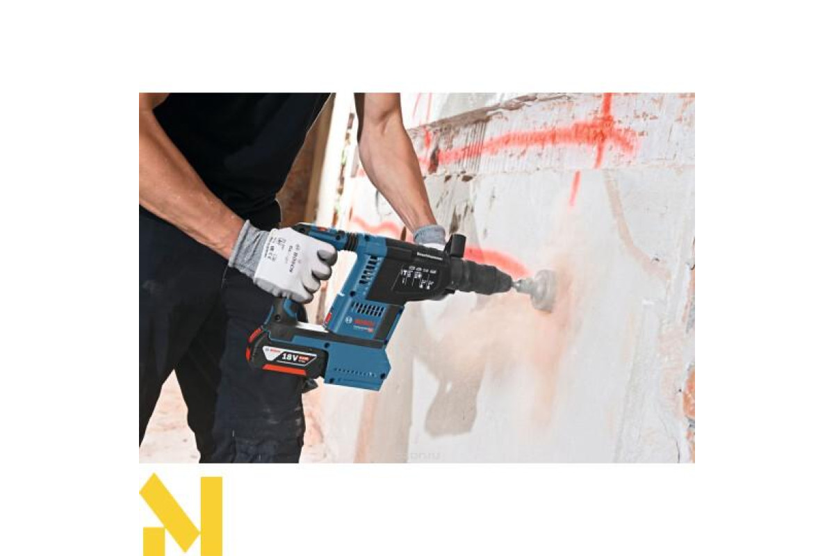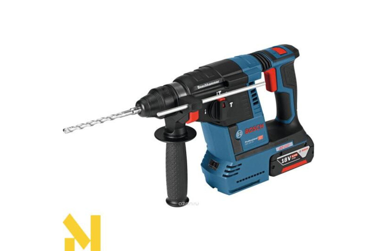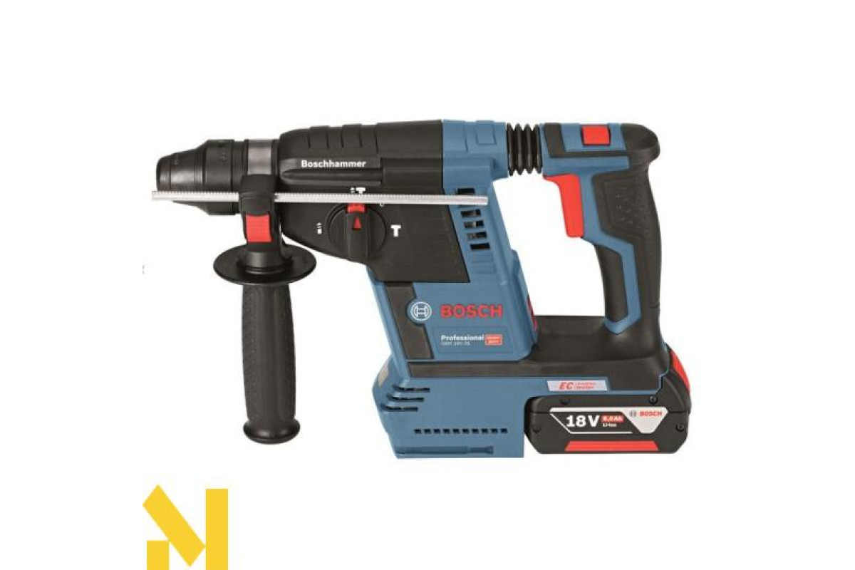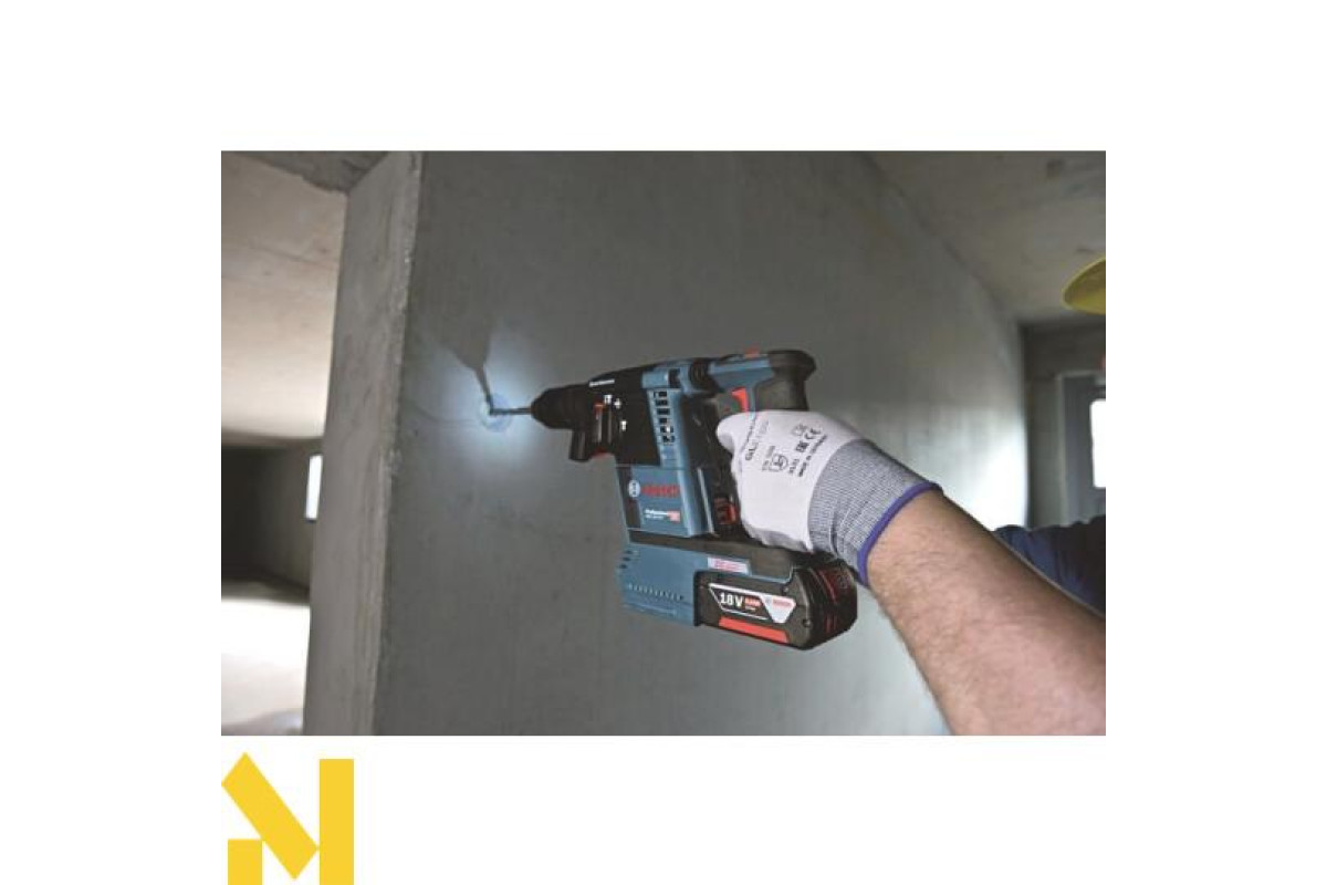 Акумуляторний перфоратор BOSCH GBH 18 V-26 - нова інноваційна модель акумуляторного перфоратора з патроном SDS-Plus і антивібраційною рукояткою. Модель перфоратора BOSCH GBH 18 V-26 оснащена компактним і пилонепроникним безщітковим двигуном. Оснащення підсвічуванням світлодіодами перфораторами BOSCH GBH 18 V-26 робить роботу зручною в умовах недостатньої освітленості. Бездротовий перфоратор BOSCH GBH 18 V-26 може обробляти до 216 отворів в бетоні тільки на одному акумуляторі.