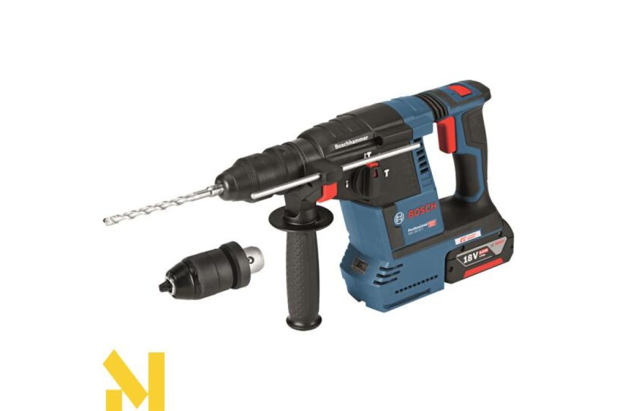 Аккумуляторный перфоратор BOSCH GBH 18 V-26 - новая инновационная модель аккумуляторного перфоратора с патроном SDS-Plus и антивибрационной рукояткой. Модель перфоратора BOSCH GBH 18 V-26 оснащена компактным и пыленепроницаемым бесщеточным двигателем. Оснащение подсветкой светодиодами перфораторами BOSCH GBH 18 V-26 делает работу удобной в условиях недостаточной освещенности. Беспроводный перфоратор BOSCH GBH 18 V-26 может обрабатывать до 216 отверстий в бетоне только на одном аккумуляторе.