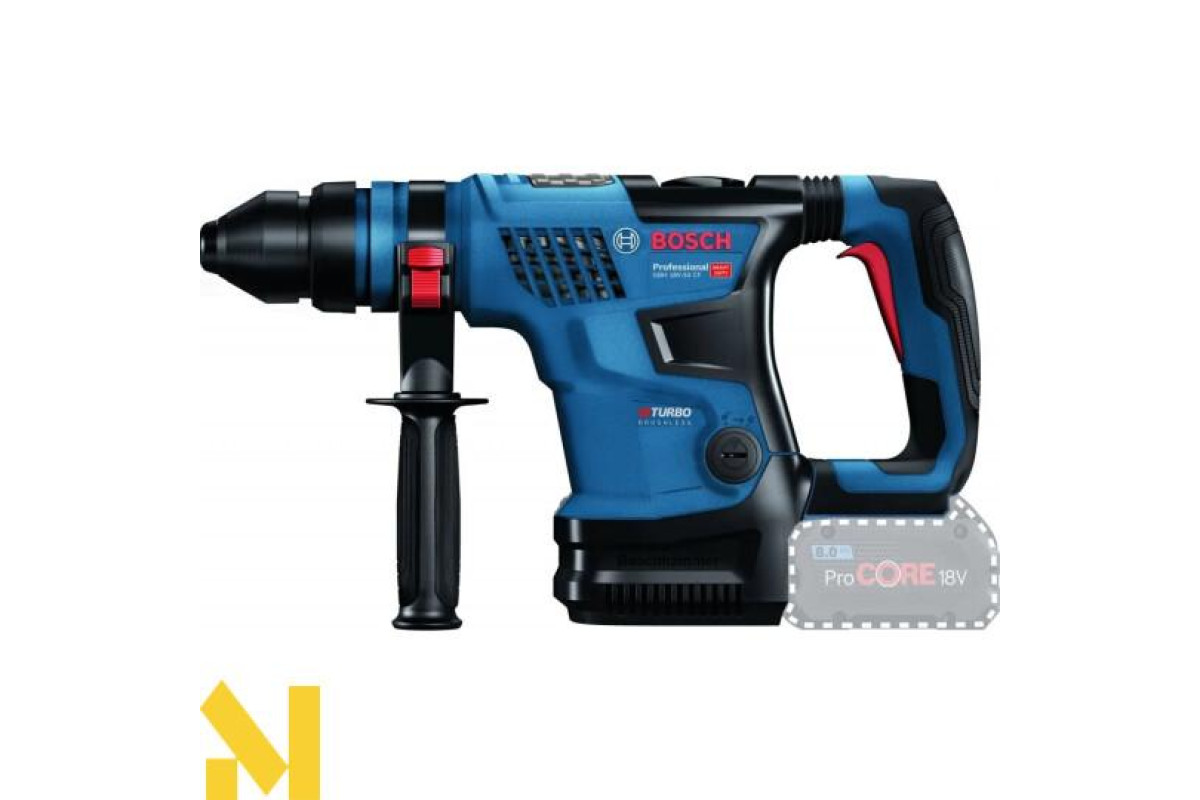 Технологія BITURBO спільно з 18 В акумулятором ProCor двигун забезпечує перфораторe високу продуктивність, тривалий час роботи на одному заряді. Для досягнення максимальної потужності рекомендується використовувати акумулятори ProCor 18 В від 5,5 Аг