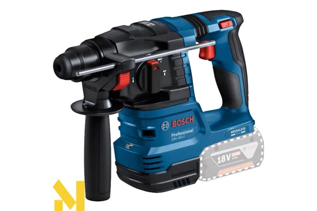 GBH 185-LI Professional — потужний у своєму класі перфоратор, призначений для ударного свердління та довбання бетону та цегли, а також свердління деревини та сталі. Він забезпечує спрощену і набагато більш ефективну роботу з постійною швидкістю, мінімізованими впливами вібрації і умовами роботи без пилу.