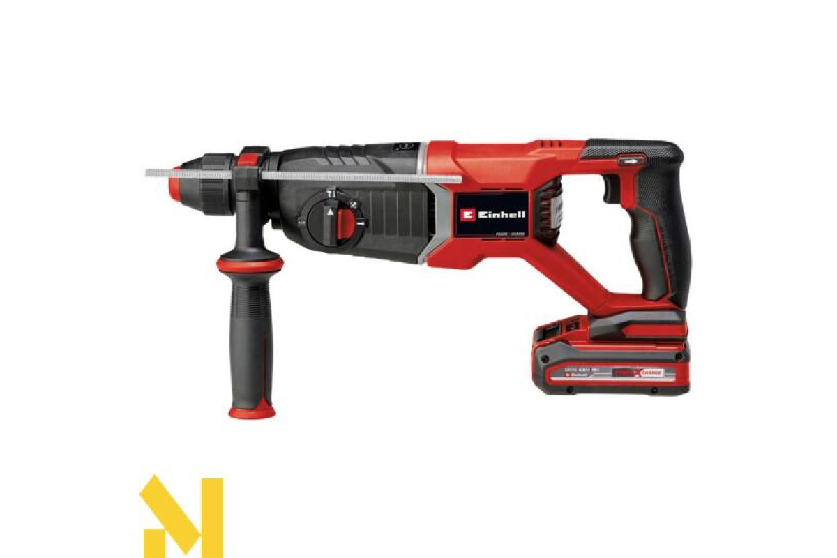 Акумуляторний перфоратор Einhell Professional TP-HD 18/26 D Li BL-Solo - це універсальний інструмент для свердління, буріння і довбання із зупинкою обертання і без неї. Інструмент входить до сімейства інструментів Power X-Change. Перфоратор оснащений безщітковим двигуном PurePOWER, що забезпечує велику потужність і тривалий час роботи. Пневматичний ударний механізм забезпечує потужність удару 2,6 джоуля. Напівавтоматичний патрон SDS-Plus забезпечує швидку зміну інструменту. D-подібне руків'я гасить вібрації та допомагає під час вертикального свердління і довбання. Інструмент поставляється в кейсі E-Case для транспортування і зберігання. У комплект поставки не входять акумулятор і зарядний пристрій.