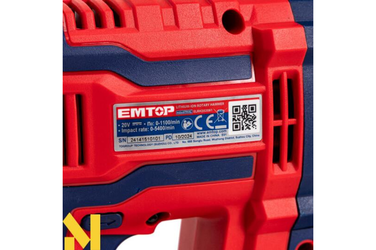 Висока потужність: Перфоратор Emtop ELRH202081 має потужний двигун, що дозволяє виконувати свердління, ударне свердління та долблення в твердих матеріалах, таких як бетон, камінь, цегла, метал тощо.