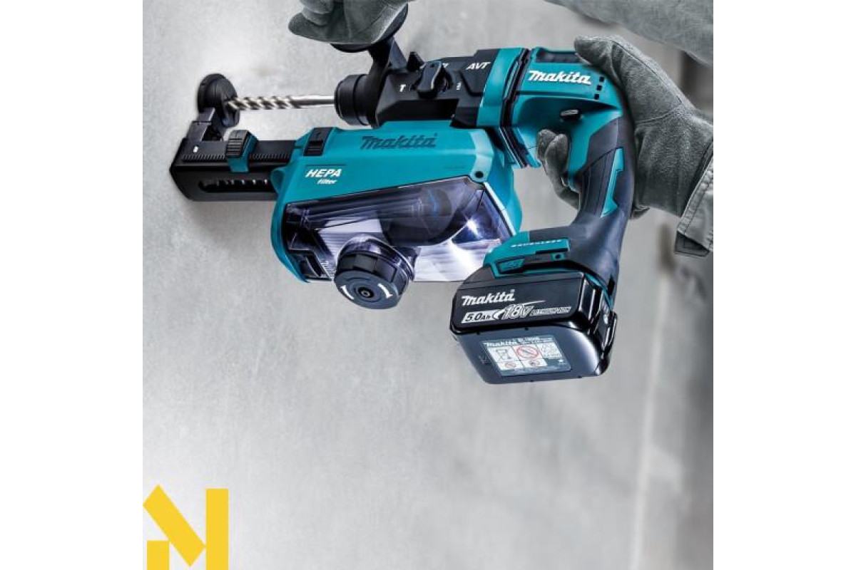 Makita DHR182ZWJ - це професійний акумуляторний перфоратор, призначений для свердління, свердління з ударом або довбання. Спеціальна конструкція забезпечує виключно надійний захист від попадання пилу і води в інструмент.