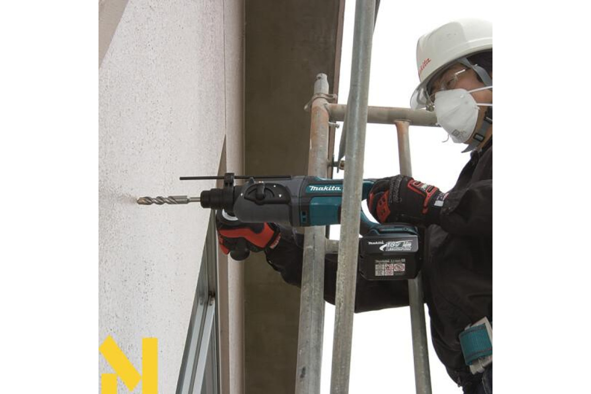Електроінструмент працює на літій-іонних акумуляторах на 18В, ємністю 1,3/1,5/3,0 та 4,0 Ач. Мотор без навантажень видає 1100 оборотів за хвилину. Наявне електронне регулювання частоти обертів. Завдяки типу патрона SDS-PLUS, оснастка змінюється досить легко. Передбачено 40 положень встановлення долота у 360 градусів.