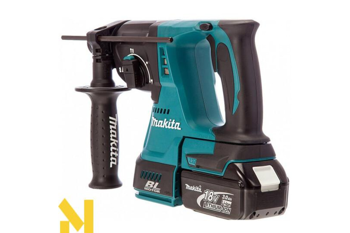 Акумуляторний перфоратор Makita DHR242RFJ призначений для проведення будівельно-ремонтних робіт в умовах обмеженого доступу до електромережі. Перфоратор має 3 режими роботи: свердління, свердління з ударом і довбання. Центр тяжкості, розташований ближче до вібропоглинаючий рукоятці, забезпечує неперевершений баланс інструменту. Перфоратор Makita DHR242RFJ оснащений безщітковим двигуном постійного струму, який знижує втрати енергії на 30%, забезпечуючи більш тривалий час роботи між зарядом акумулятора. Унікальна гумова сполучна конструкція пригнічує передачу вібрації на клеми акумулятора.