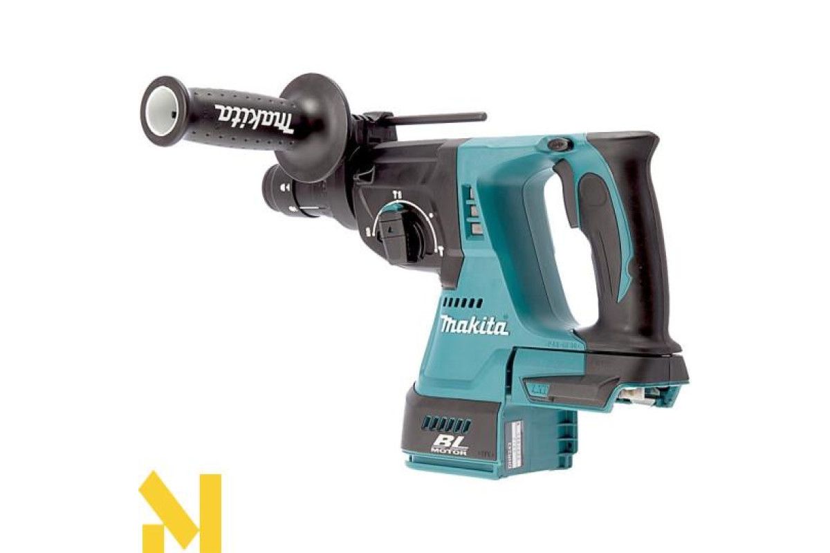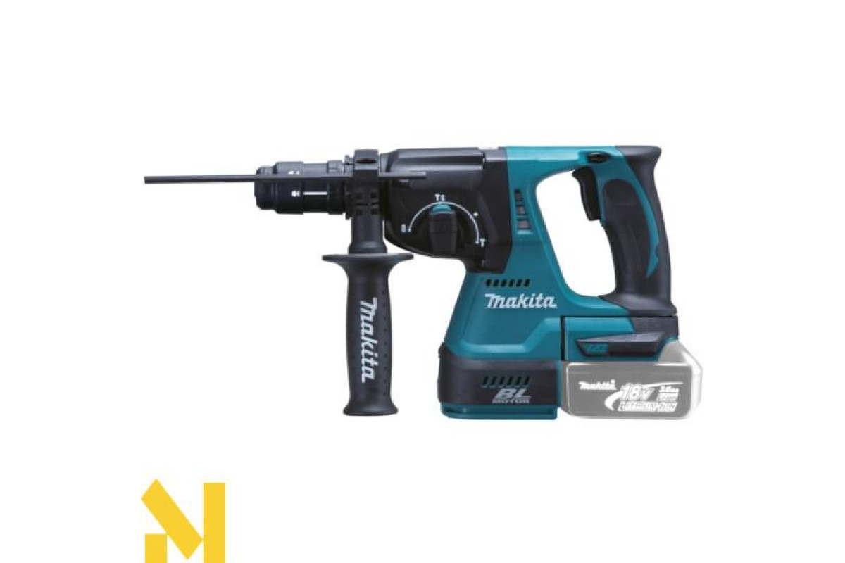 Акумуляторний перфоратор Makita DHR243Z - професійний перфоратор, який застосовується для перфорування в стінах і заготовках, виконує свердління, свердління з ударом, використовується в режимі відбійного молотка, а також оснащений функцією реверсу. Акумуляторний перфоратор Makita DHR243Z зроблений за новою конструкції, де спеціальні гумові накладки на корпусі і рукоятках ефективно гасять вібрацію. Як джерело живлення в перфораторі Makita DHR243Z застосовується літій-іонний акумулятор з вольтажем 18 В і ємністю 5 А-ч.