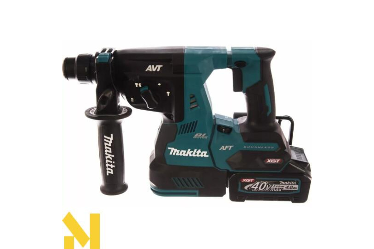 Акумуляторний перфоратор Makita HR001GM201 (XGT, 40В, 4Аг х 2шт, DC40RA, Makpac, 28мм, AWS, 2.9Дж)