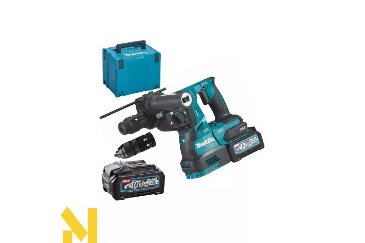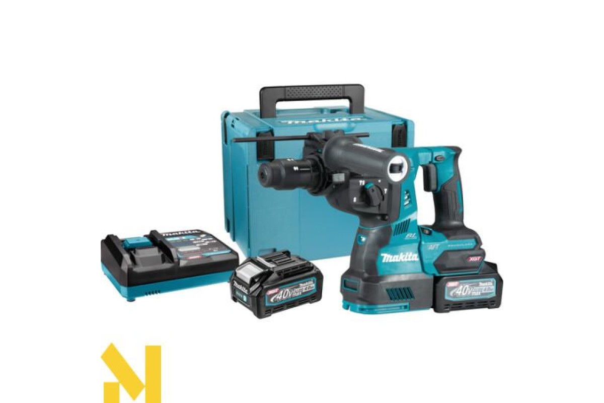 Акумуляторний перфоратор Makita HR002GM201 (XGT, 40В, 4Аг х 2шт, DC40RA, Makpac, 28мм, AWS, 2.9 Дж)
